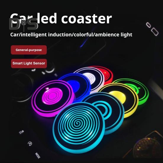 1 пара светящихся подставок для автомобиля, умные датчики, перезаряжаемые, 3 режима освещения, 7 цветов, цикличное дыхание, подсветка, светодиодные подставки для автомобилей, держатели для стаканов