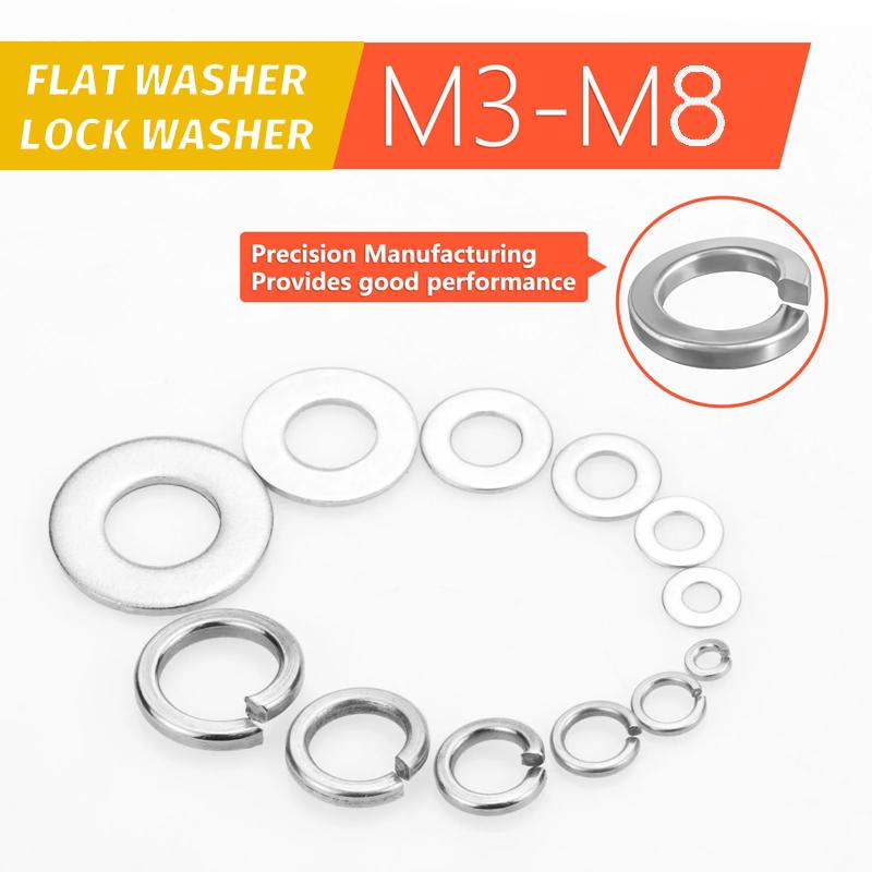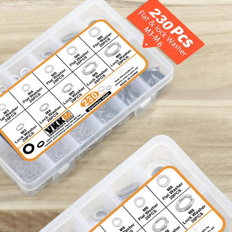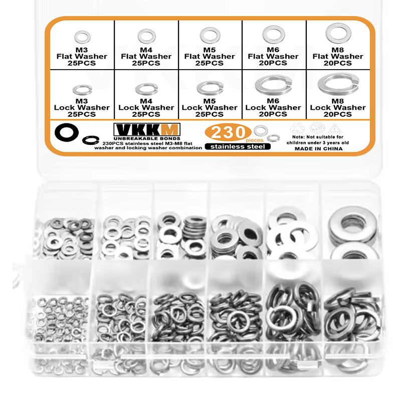 230 шт., комбинация из плоской шайбы и стопорной шайбы из нержавеющей стали M3-M8