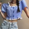 VONDA Женские летние кружевные блузки с квадратным вырезом в клетку с коротким рукавом и пузырьками