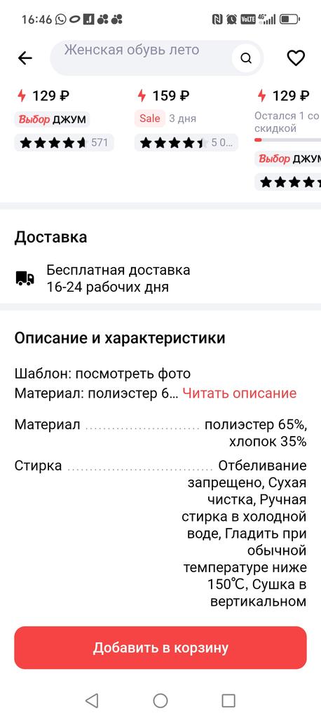 В рекламе состав ткани полиэстер 65% , спандекс 35%( фото прилагаю) на футболке УЖЕ - полиэстер 95 , спандекс 5%?!? Ткань тонкая синтетика : брюки просвечивают, но по размеру норм (как и заявлено в описании, а вот футболка в реале ОГ не 130, а 128см (в обтяжку!), а так как ткань СОВСЕМ не тянется - тот увы!: маловата.. И я думаю , что в прохладную погоду данный костюмчик не наденешь , а в жару синтетика будет липнуть к телу. Из под окантовки горловины футболки торчат нитки. На рекламном фото видно , что отделка горловины выполнена на плоскошовке , а в реале отделка горловины косой бейкой , что уже смотрится гораздо дешевле 🤔