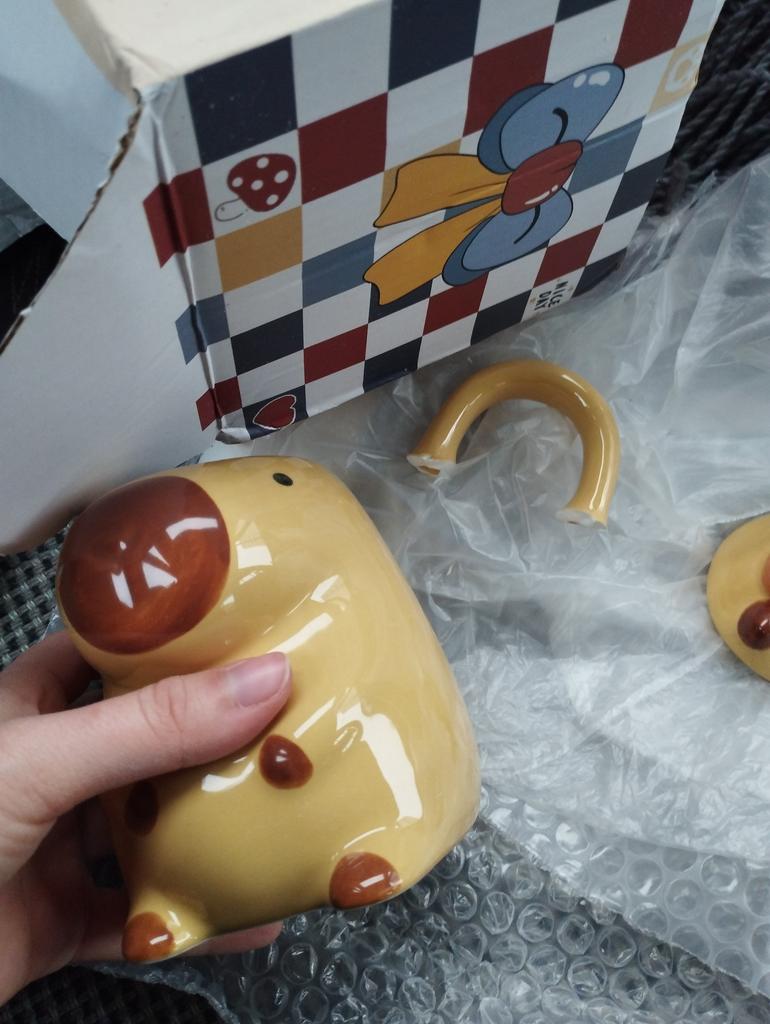 Кружка приехала просто в коробке и из-за этого ручка отломалась. Я очень расстроена, так как брала пару на подарок...