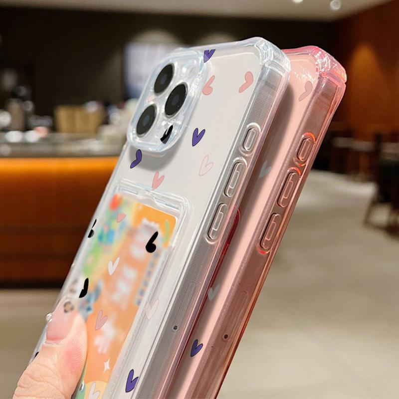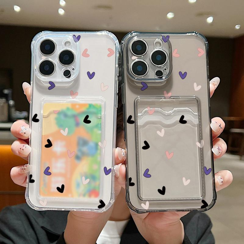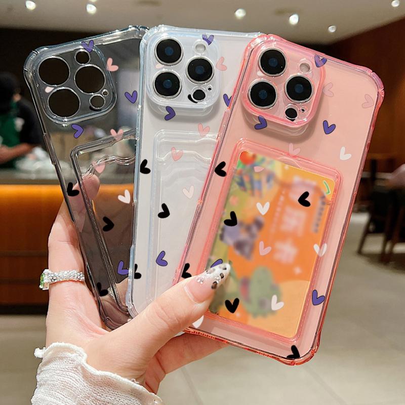 Чехол для телефона с изображением маленьких сердец любви и слотом для карт для iPhone 16 Pro 15 Pro Max 14 13 12 11, мягкий силиконовый прозрачный противоударный тонкий чехол-бампер