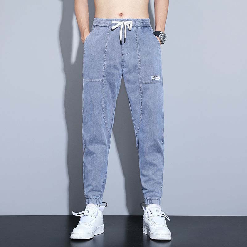 Мужские джинсы летние тонкие эластичные свободные свободные универсальные эластичные брюки-корсет на талии