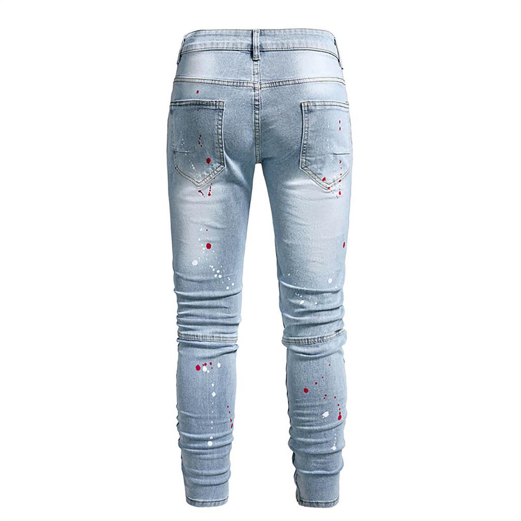 Мужские новые модные эластичные рваные индивидуальные джинсовые брюки