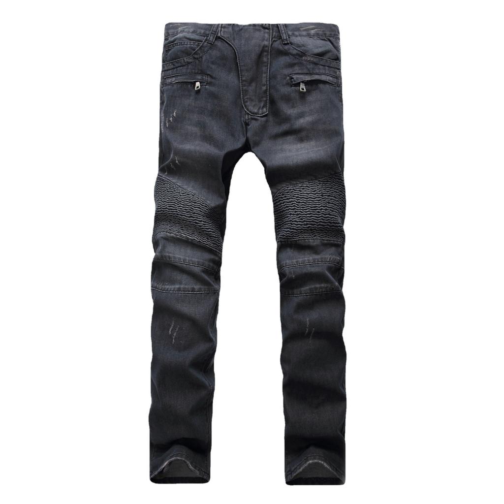 Мужские повседневные байкерские джинсовые джинсы, эластичные однотонные обычные мужские уличные брюки, винтажные молодежные брюки большого размера