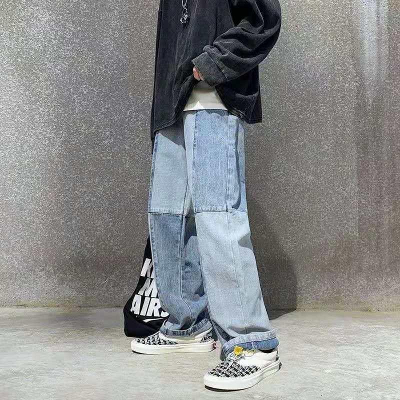 Мужская мода Y2K одежда хип-хоп мешковатые джинсы пэчворк широкие прямые брюки 2024 трендовые брюки джинсовые брюки для мужчин уличная одежда спортивные штаны