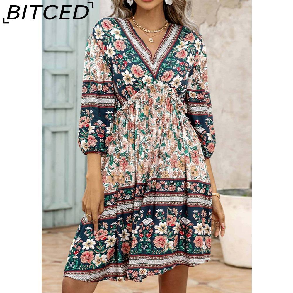 BITCED Женская мода лето весна цветочный принт короткий рукав V-образный вырез повседневные платья — купить товар онлайн с бесплатной доставкой по всему миру!