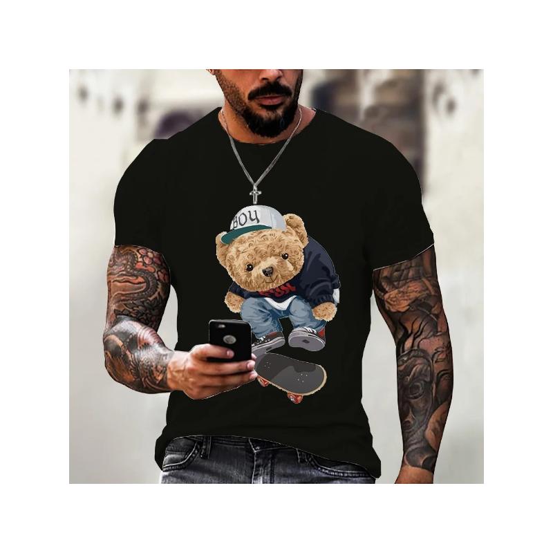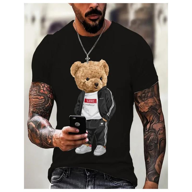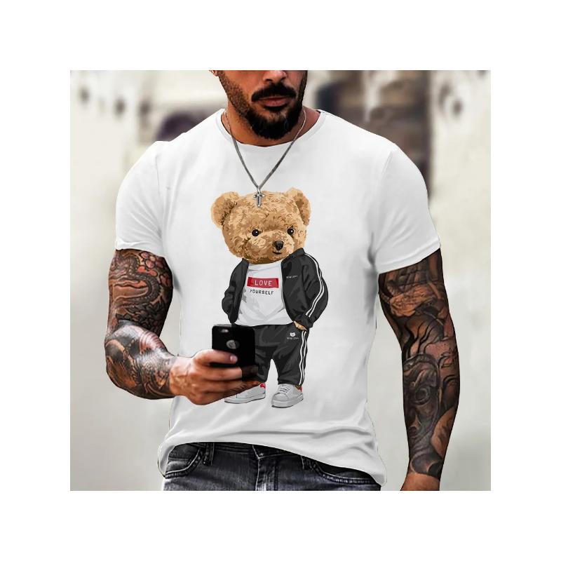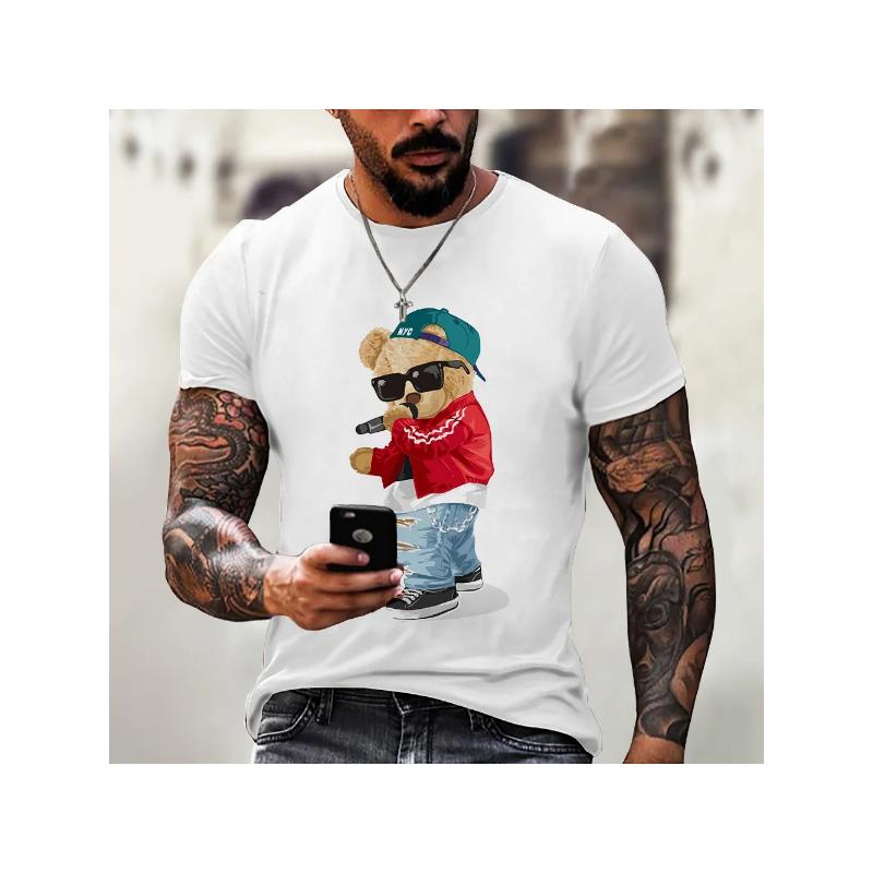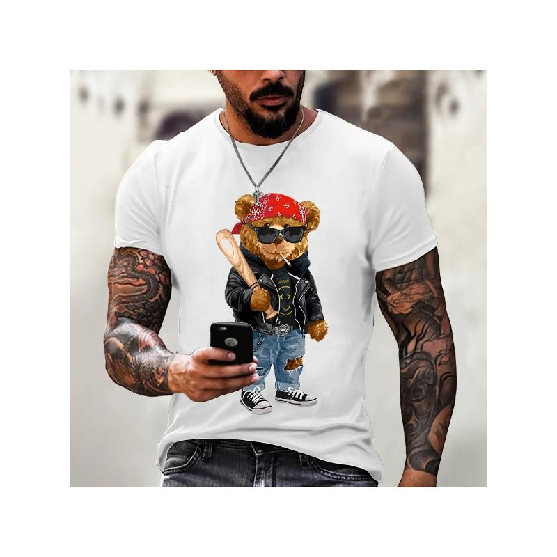 Новая мужская футболка с принтом плюшевого мишки, повседневная, с круглым вырезом, коротким рукавом, летняя, уличная, трендовая, хип-хоп, Харадзюку, с круглым вырезом, большая футболка