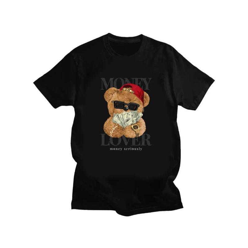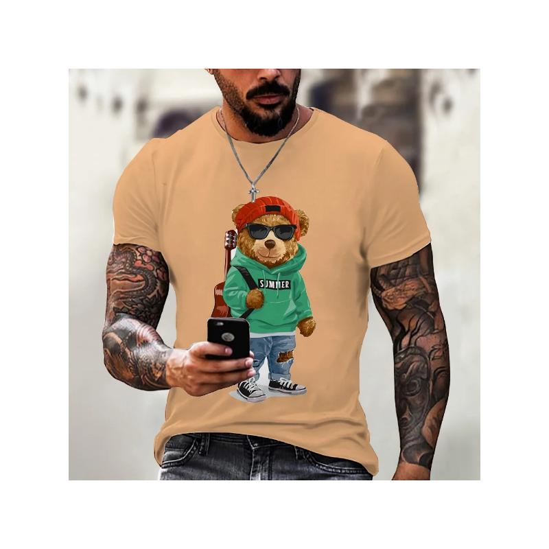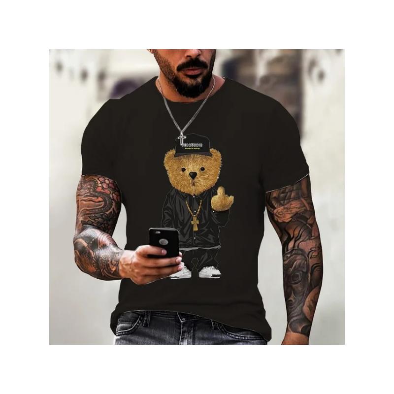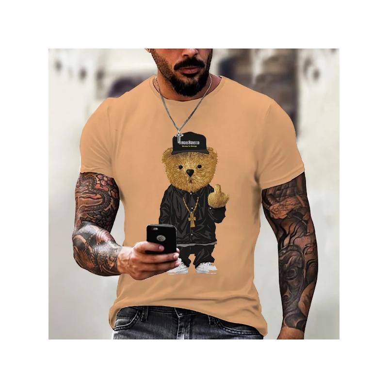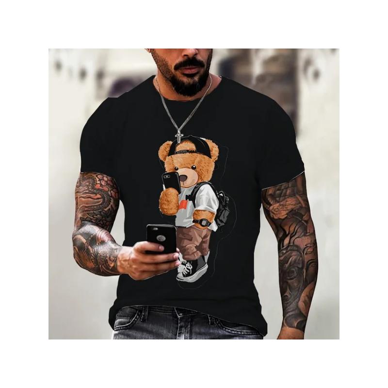Новая мужская футболка с принтом плюшевого мишки, повседневная, с круглым вырезом, коротким рукавом, летняя, уличная, трендовая, хип-хоп, Харадзюку, с круглым вырезом, большая футболка
