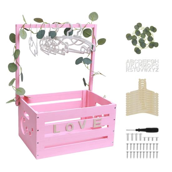 В комплект розово-голубого деревянного шкафчика для детского душа входят 1 ящик для хранения, 10 вешалок, 26 деревянных букв и эвкалиптовая гирлянда с элементами крепления.. Вы можете украсить коробку гирляндой из эвкалипта или декорировать ее искусственными цветами и лентами.. Изготовленная из высококачественной утолщенной древесины, эта детская корзина безопасна в использовании благодаря гладкой поверхности и прочной конструкции.