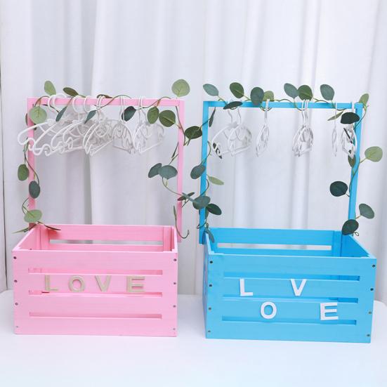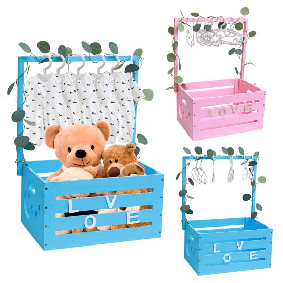 Этот вместительный ящик для детского душа представляет собой практичное решение для хранения деревянных вещей размером примерно 40 x 30 x 20 см.. В нем достаточно места для различных вещей, таких как мягкие игрушки, одежда, подгузники и многое другое.. Коробка оснащена удобной ручкой для удобства переноски.. Он не только служит декоративным элементом для вечеринок по случаю рождения ребенка, но и может использоваться для развешивания одежды и хранения мелких предметов.