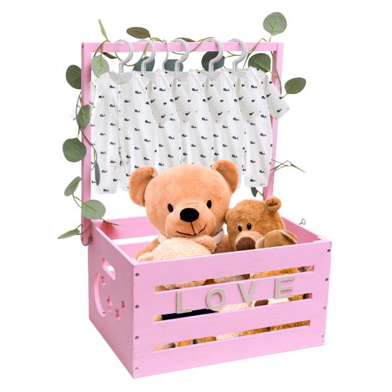 Просторное хранилище: Этот деревянный ящик для детского душа размером 40 x 30 x 20 см предлагает достаточно места для различных вещей, таких как одежда, подгузники, игрушки и многое другое.. Удобная ручка обеспечивает легкую переноску в дороге.