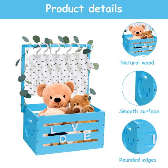 Сборка очень проста благодаря предварительно просверленным отверстиям и входящим в комплект винтам.. Персонализируйте коробку, прикрепив аксессуары к ручке или боковинам.. Эта универсальная детская корзина станет прекрасным подарком для будущих родителей, друзей, учителей или соседей.. Этот деревянный ящик для хранения идеально подходит для вечеринок по случаю рождения ребенка, дней рождения, новоселья, Рождества и других праздников. Он добавит особый штрих к процессу дарения подарков.