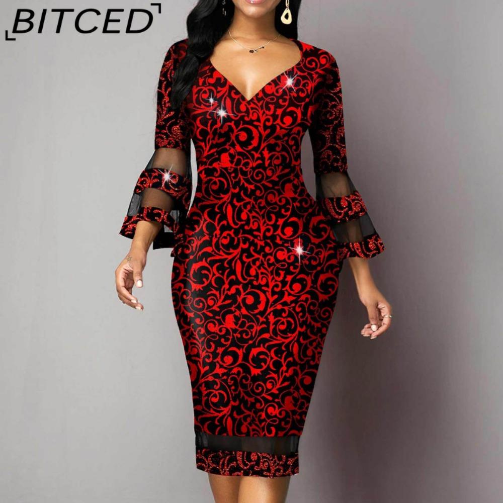 BITCED Женская мода лето весна повседневные платья с рукавом 3/4 и V-образным вырезом