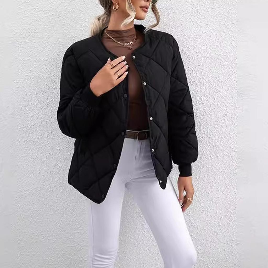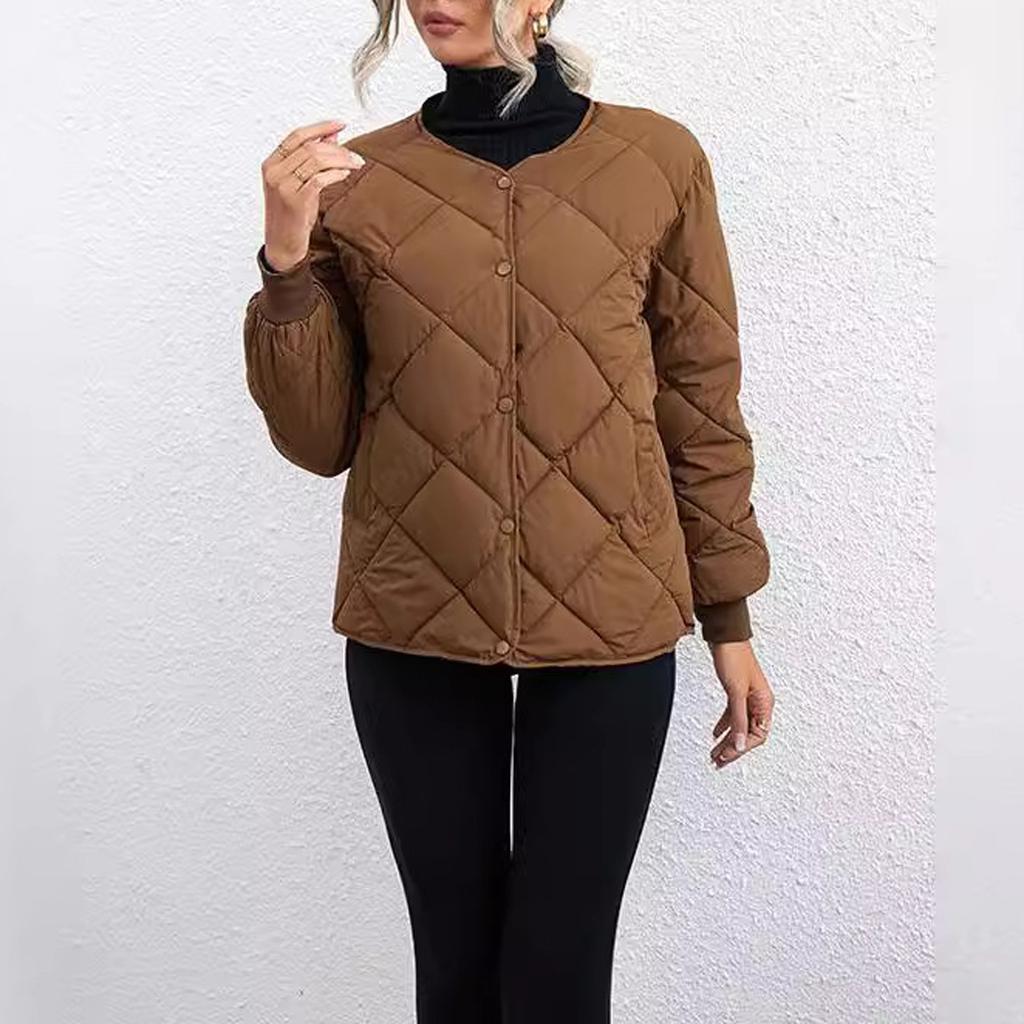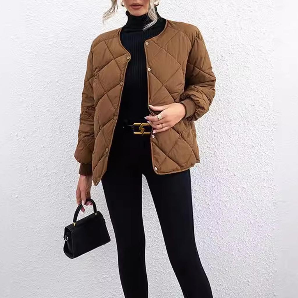 Женская однотонная короткая куртка-пуховик с ромбовидной клеткой, повседневная куртка с карманами
