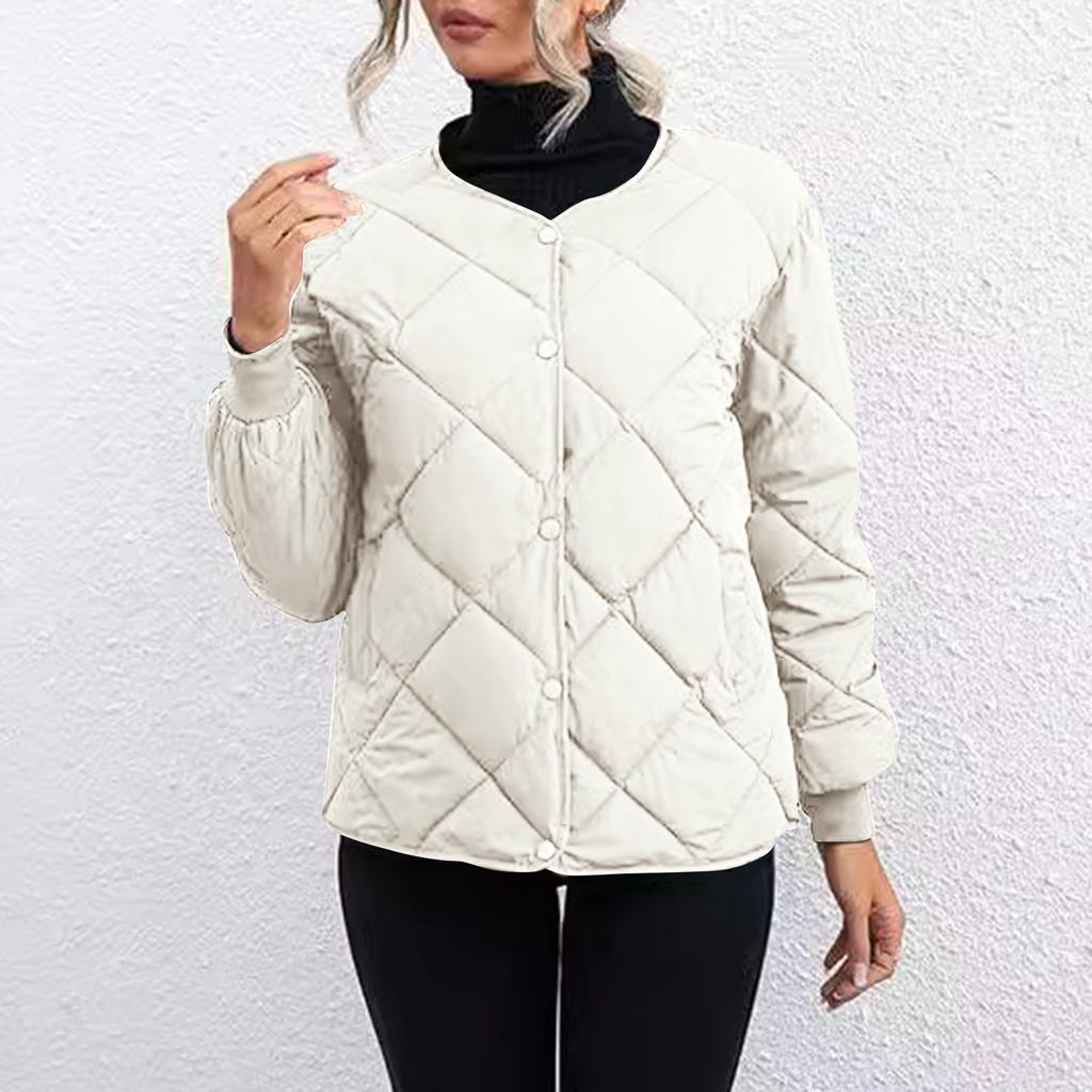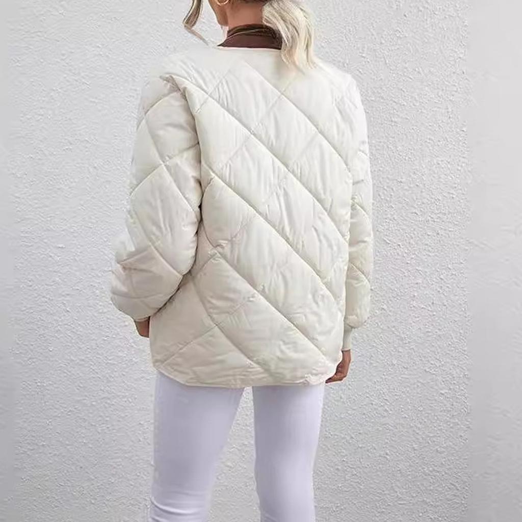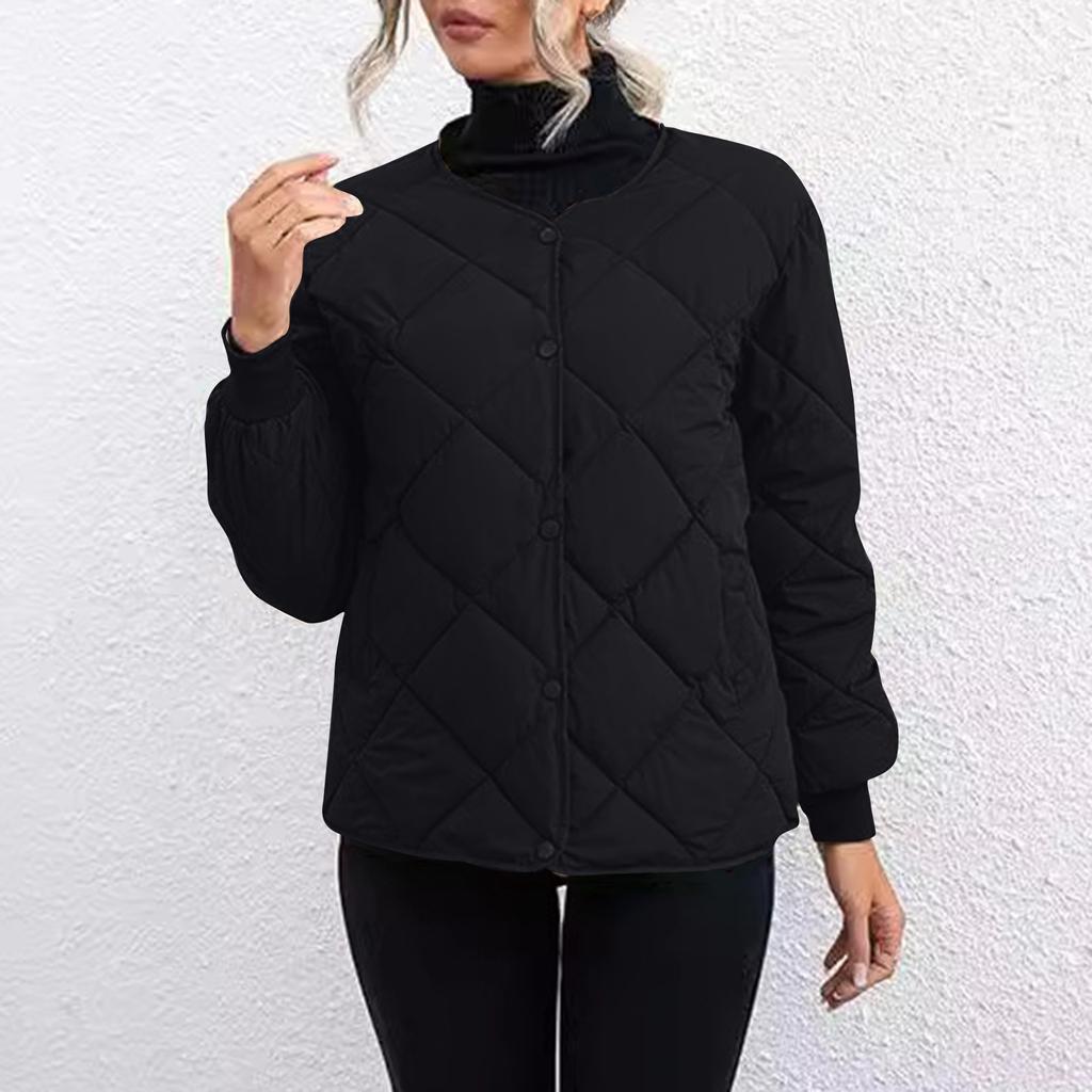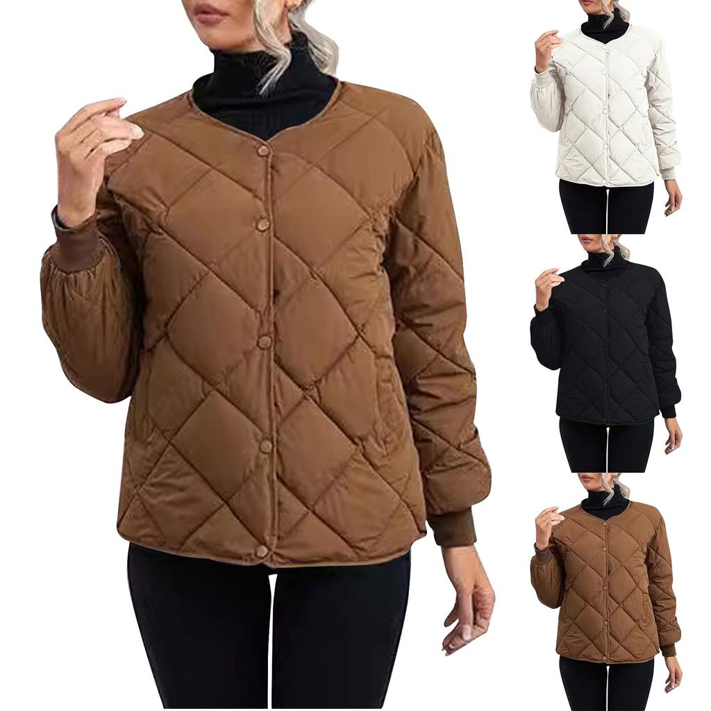 Женская однотонная короткая куртка-пуховик с ромбовидной клеткой, повседневная куртка с карманами