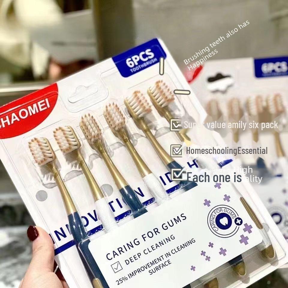Мягкая зубная щетка с глубокой очисткой и щетиной высокой плотности, 6 штук