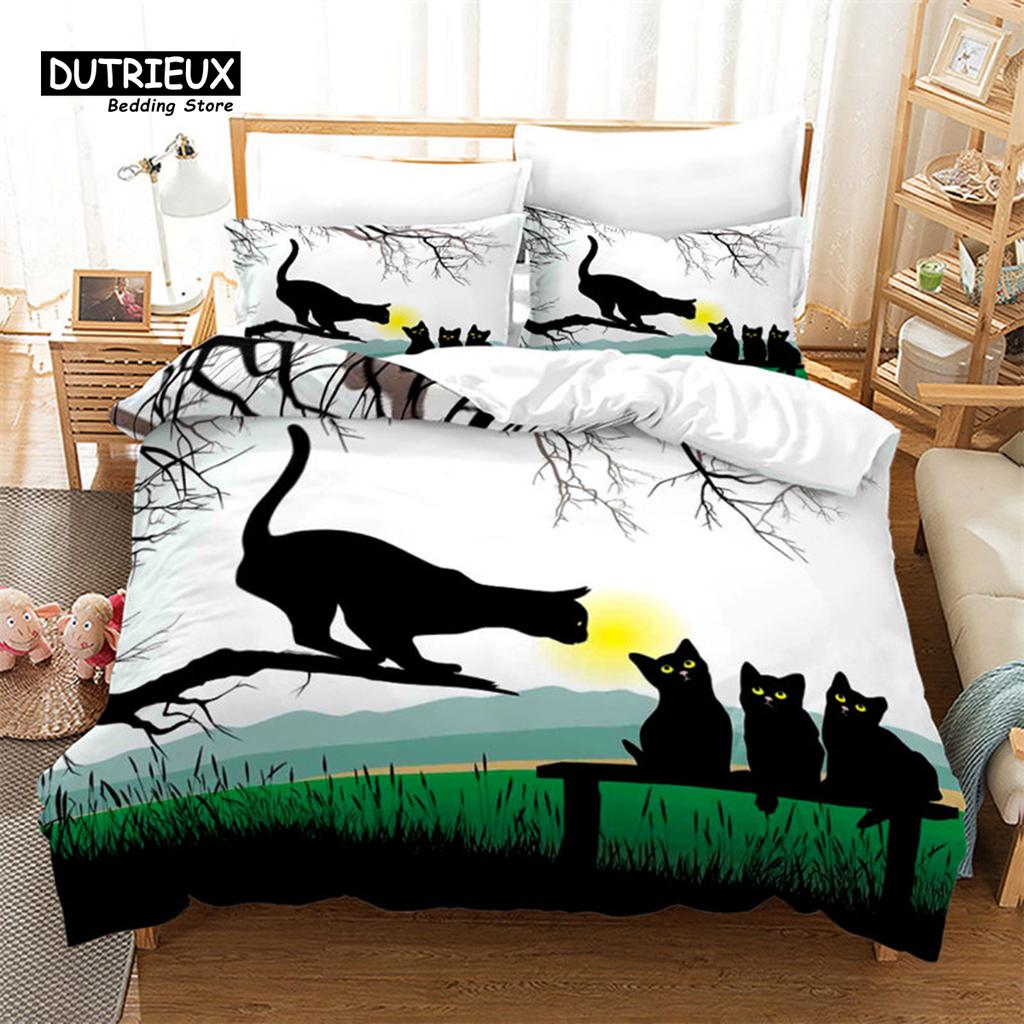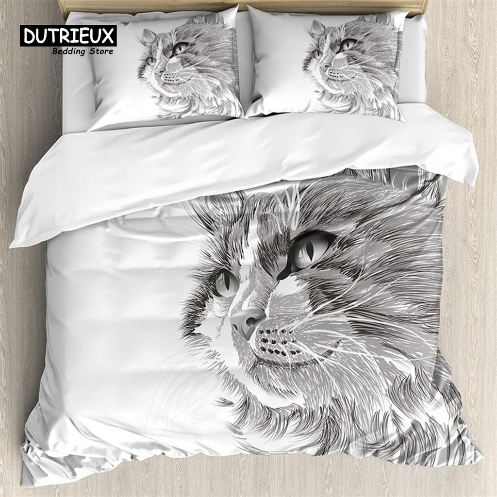 Милый мультяшный кот Пододеяльник Забавные коты Комплект постельного белья Микрофибра Животные Одеяло Чехол с наволочками Twin Полный для детей подростков