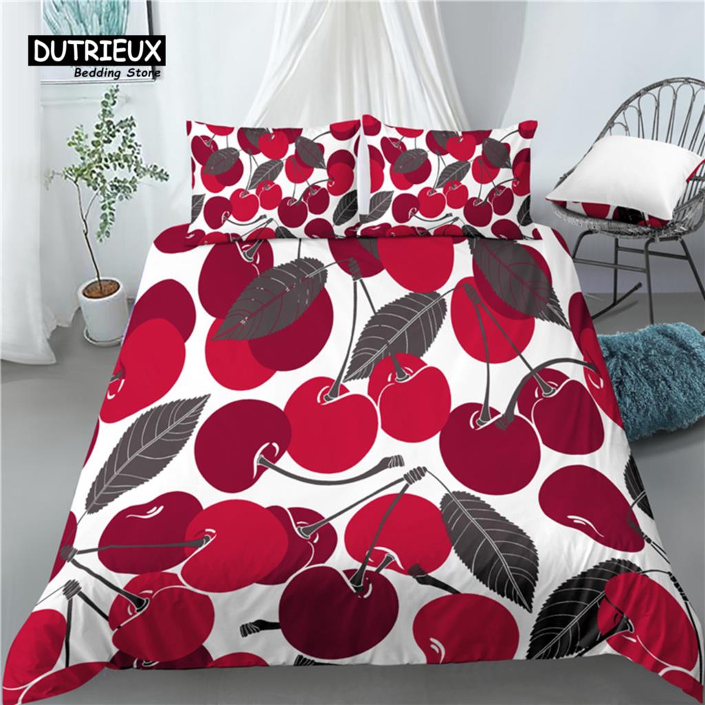 Главная Жизнь Роскошь Вишневый Принт 2/3 Шт Удобный Пододеяльник Наволочка Постельное Белье Комплект Королева и Король Размер ЕС/США/Австралия