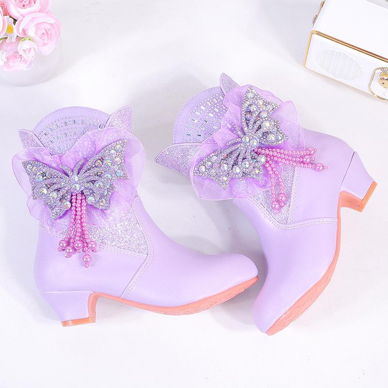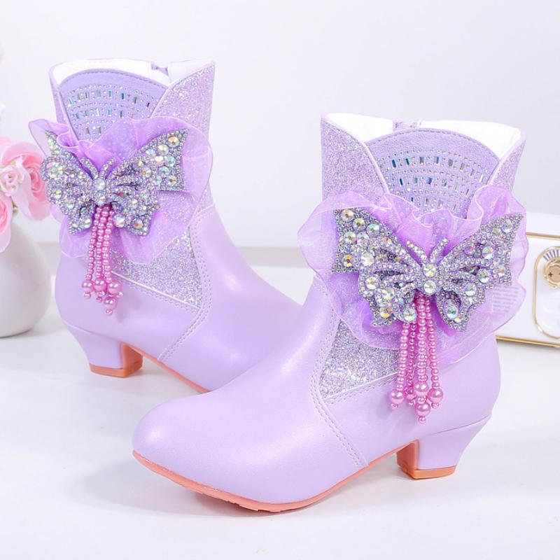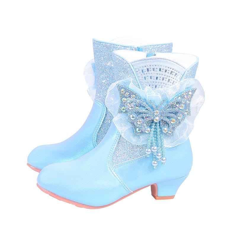Роскошные зимние сапоги для девочек, шикарные блестки, бабочки, принцесса, модные детские ботильоны, подиумные, универсальные, детские, повседневные сапоги