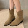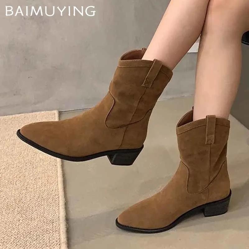 Женские ботильоны из массивной замши, элегантные туфли на среднем каблуке для ходьбы, женские туфли-лодочки 2024 года, зимние туфли-лодочки, дизайнерские повседневные готические туфли-лодочки
