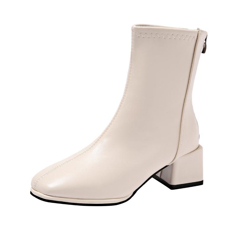 2024 Весна и осень Высококачественные женские сапоги Модные круглые носки на среднем каблуке Однотонные женские короткие сапоги на молнии — купить товар онлайн с бесплатной доставкой по всему миру!