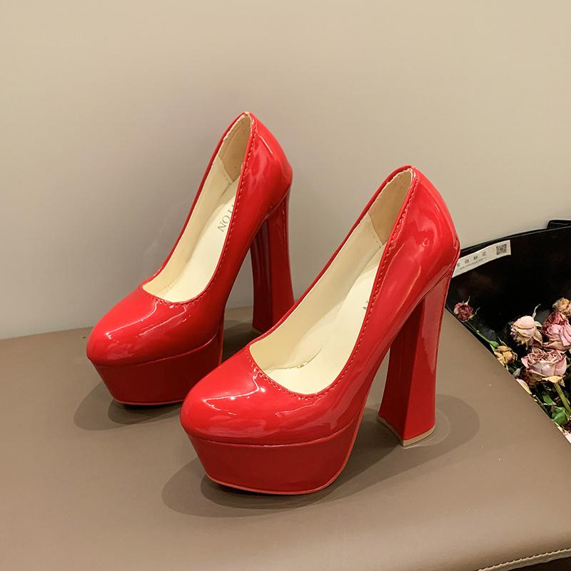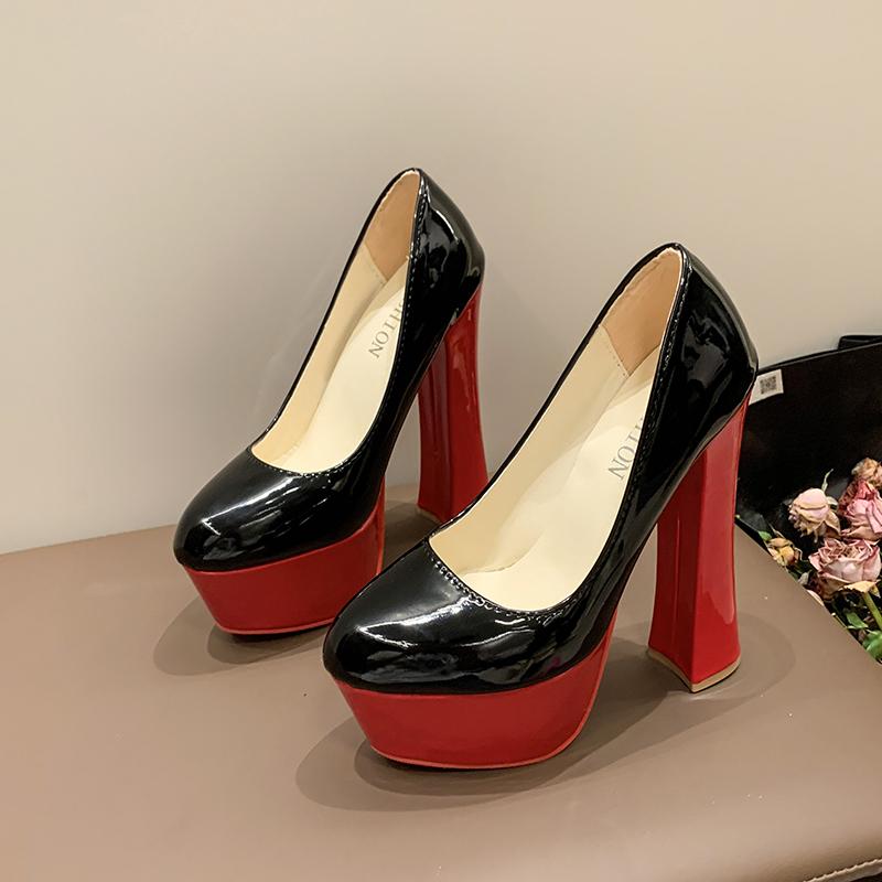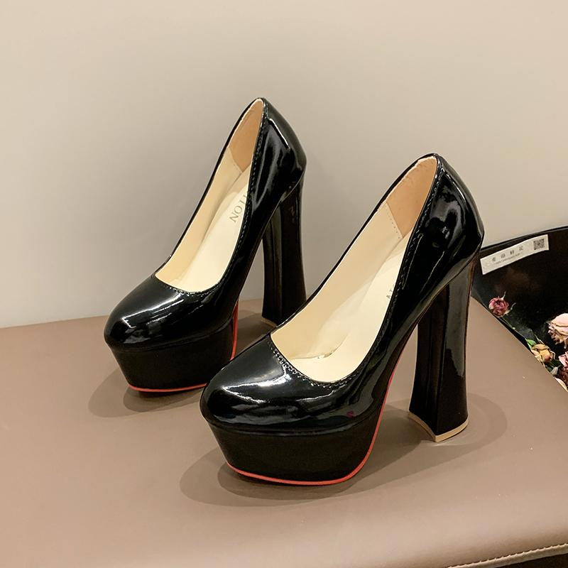 Базовые женские туфли Туфли-лодочки на толстом каблуке Туфли на квадратном каблуке с круглым носком Свадебные туфли для вечеринок и танцев Женские туфли на платформе 2024