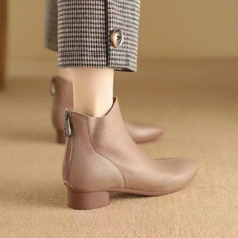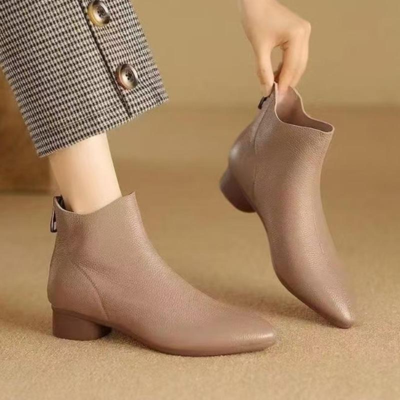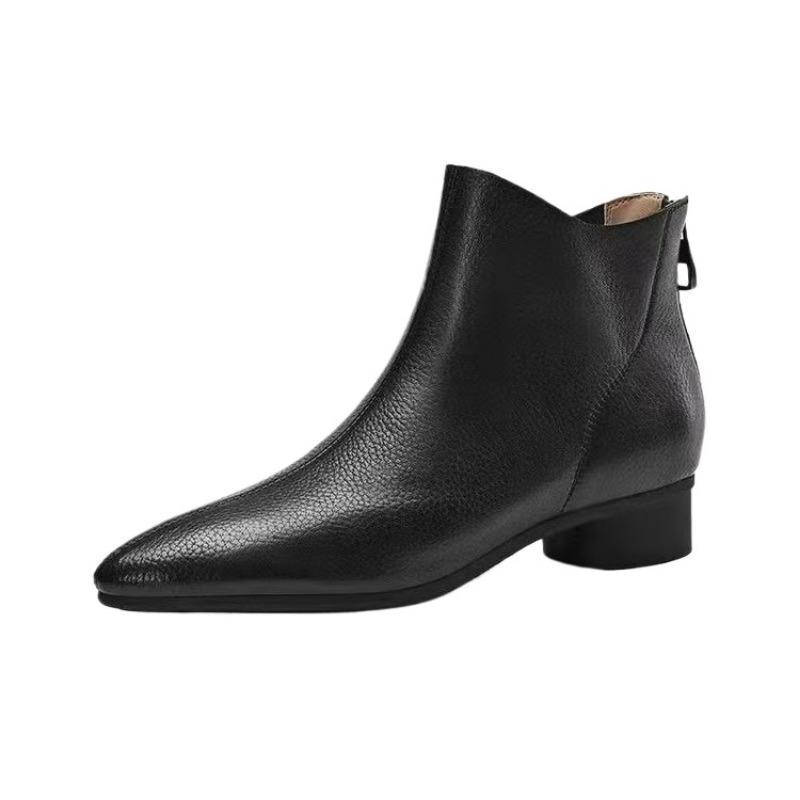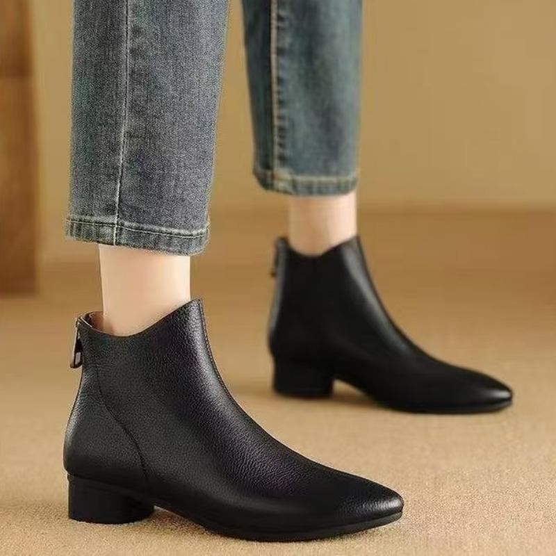 Модные ботильоны с острым носком, женские элегантные кожаные туфли на среднем каблуке 2025 года, зимние удобные туфли-лодочки большого размера на толстой подошве, женские ботинки