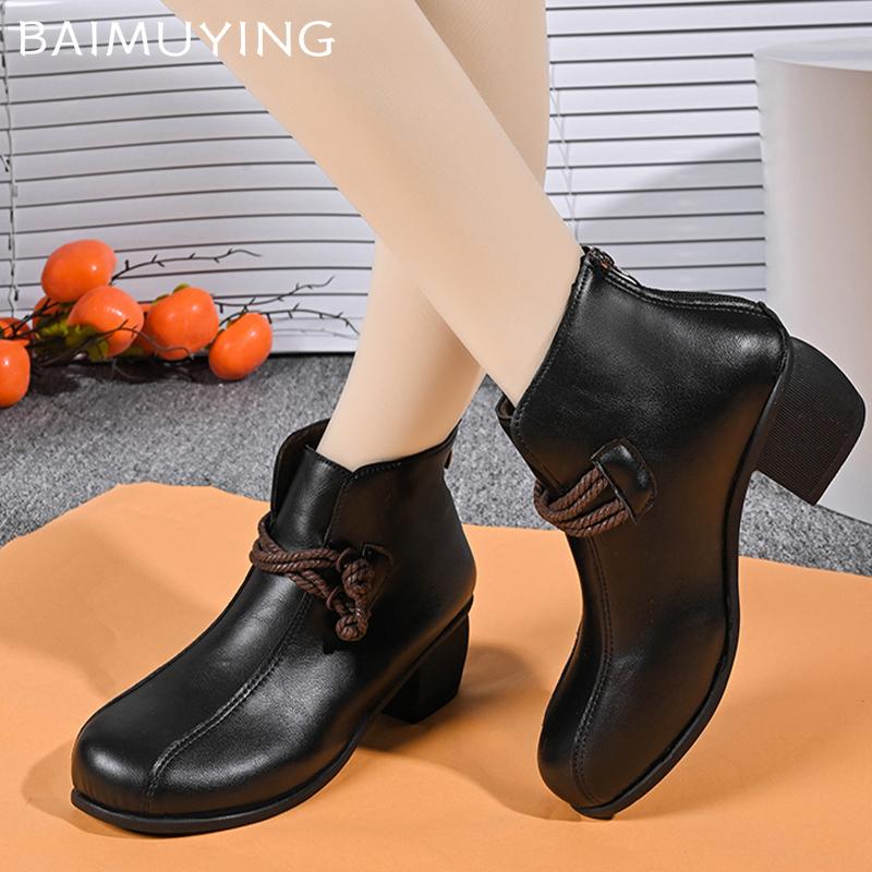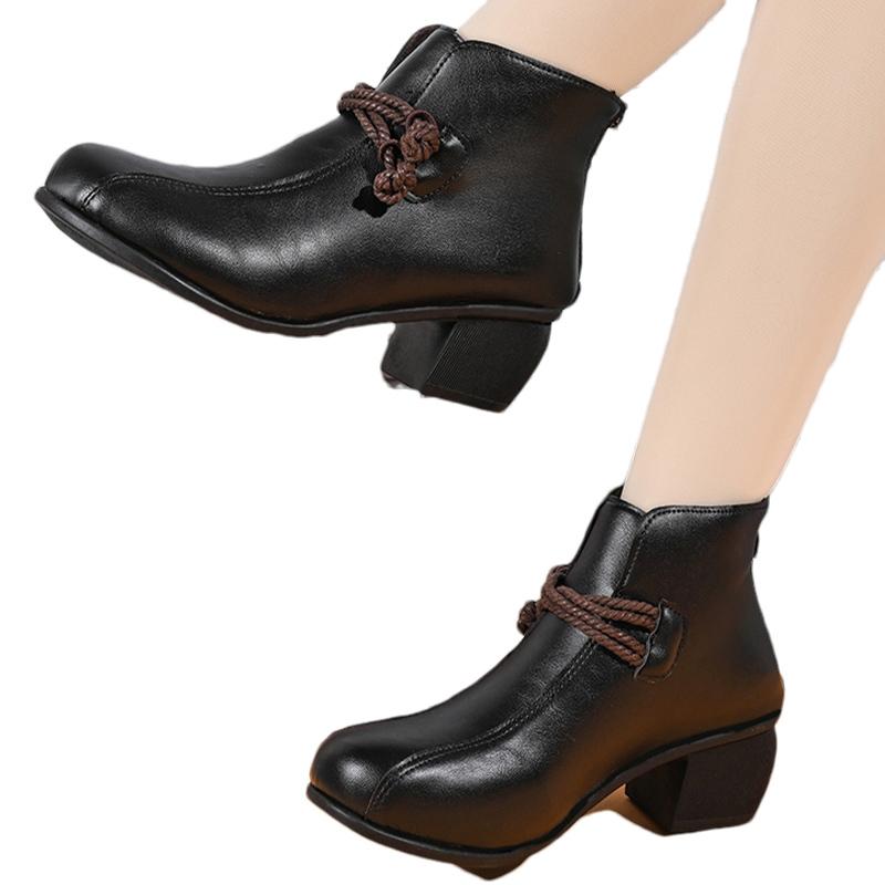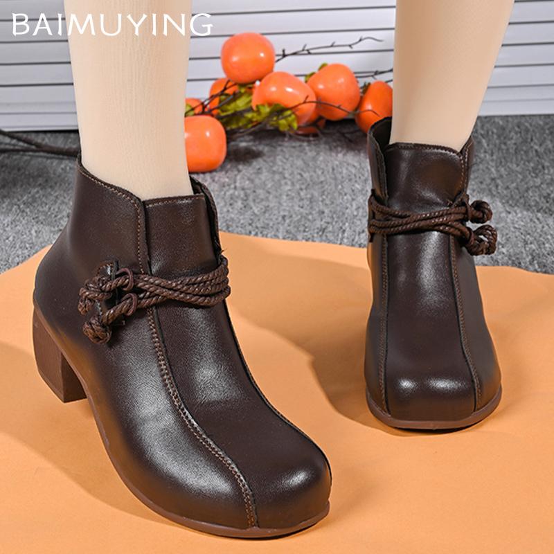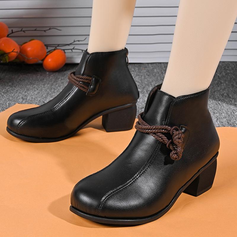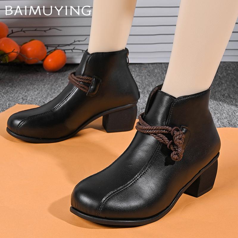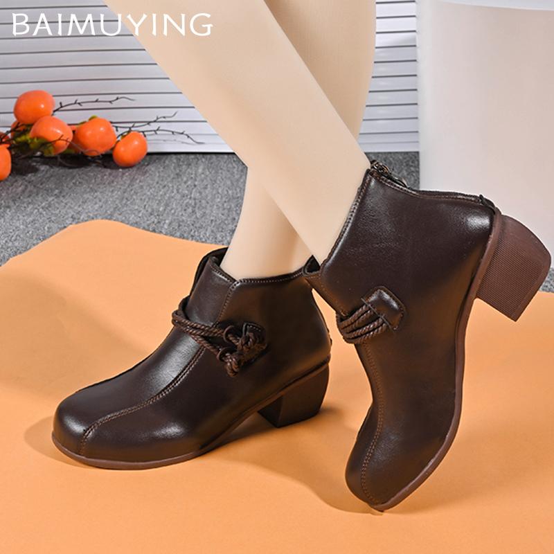 Кожаные массивные женские ботильоны, дизайнерские туфли в стиле ретро на среднем каблуке 2025 года, классические зимние туфли-лодочки в готическом стиле, ботильоны-гладиаторы для женщин