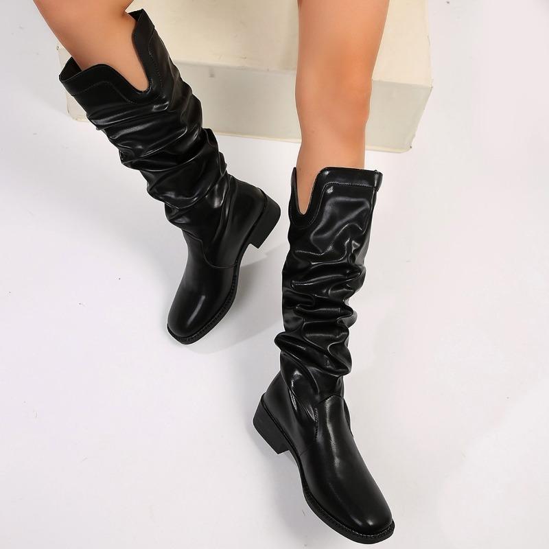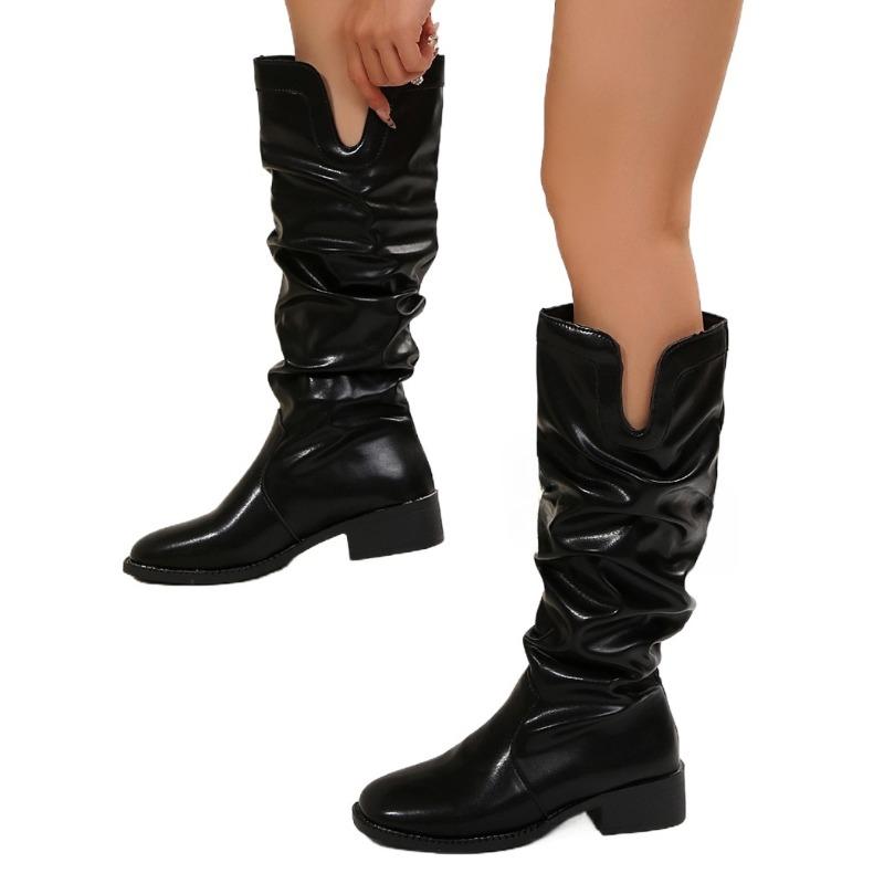 Женские высокие сапоги на среднем каблуке, кожаные туфли, зима 2024, тренд, новые готические плиссированные туфли для вечеринок, модные высокие туфли челси, Botas Mujer