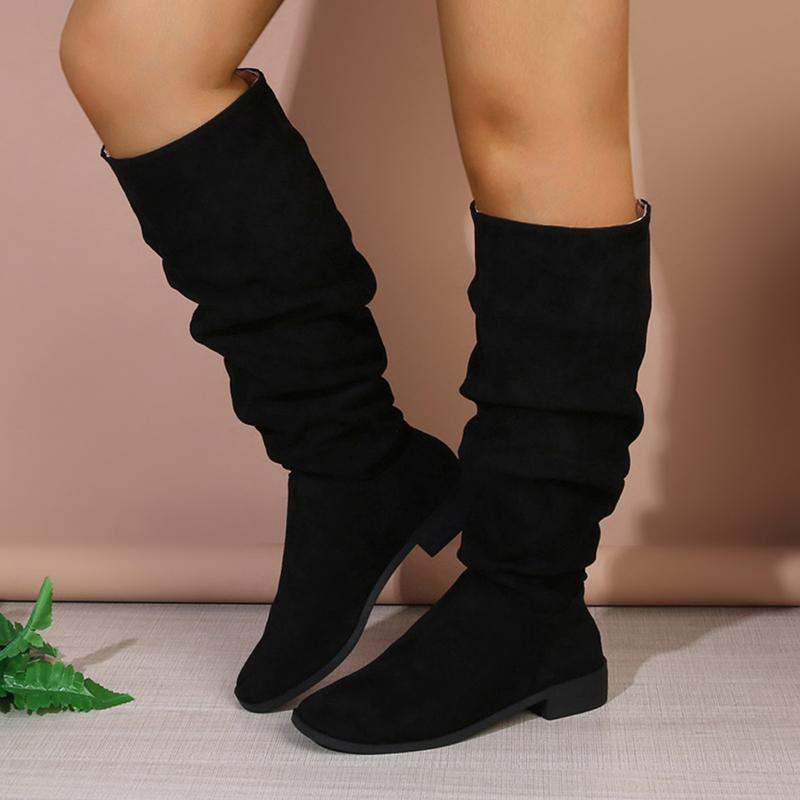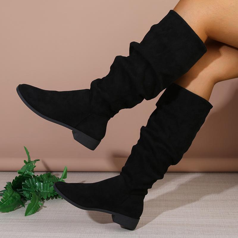 Lucyever Ботфорты большого размера женские 2024 осень плиссированные на низком каблуке длинные женские сапоги на молнии из искусственной замши в западном стиле Botas Mujer