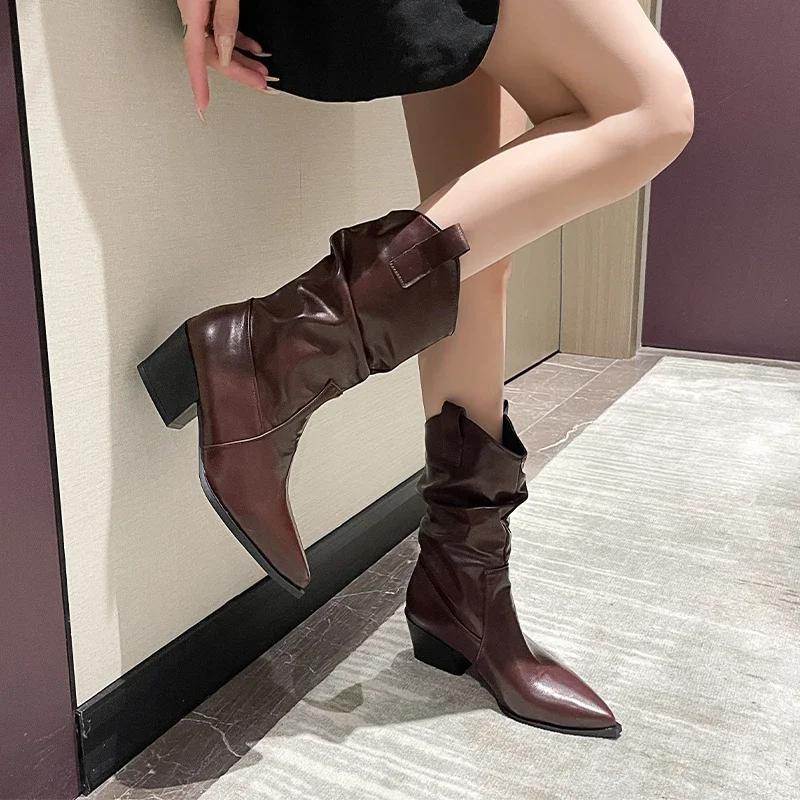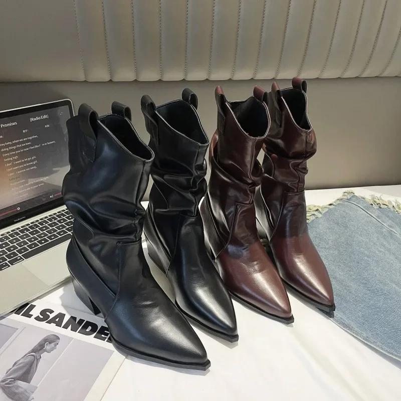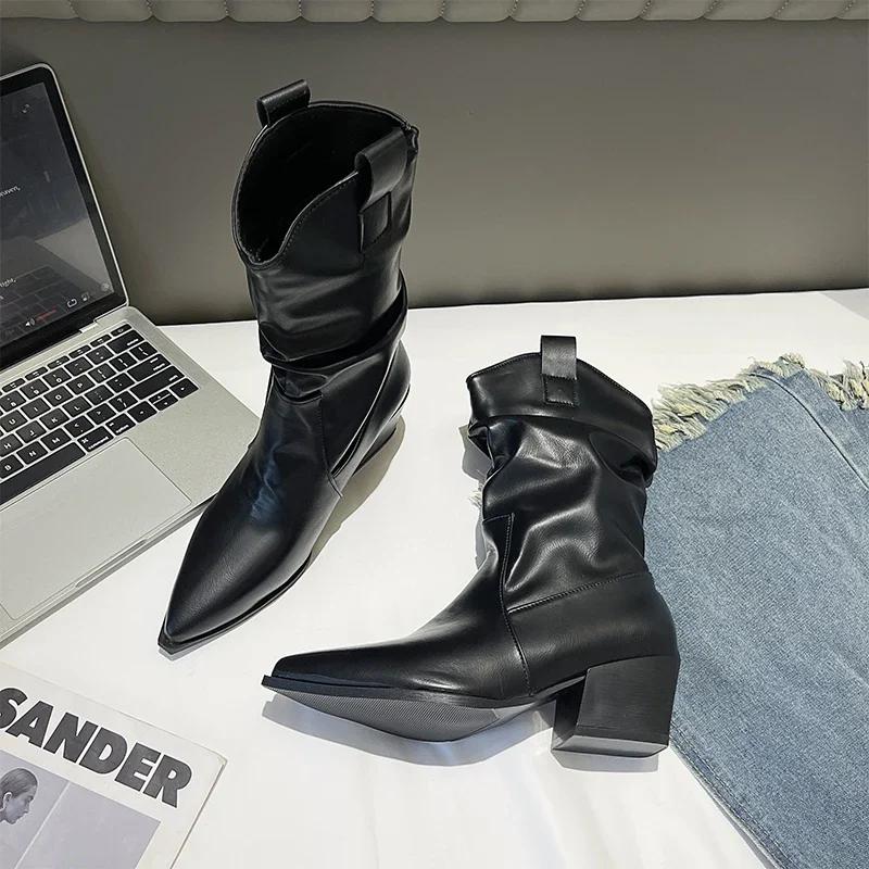 Женские ботильоны на высоком каблуке с острым носком, женские зимние плюшевые туфли-лодочки Chelsea Snow 2024 года, трендовые туфли средней длины для женщин в готическом стиле Botas Mujer