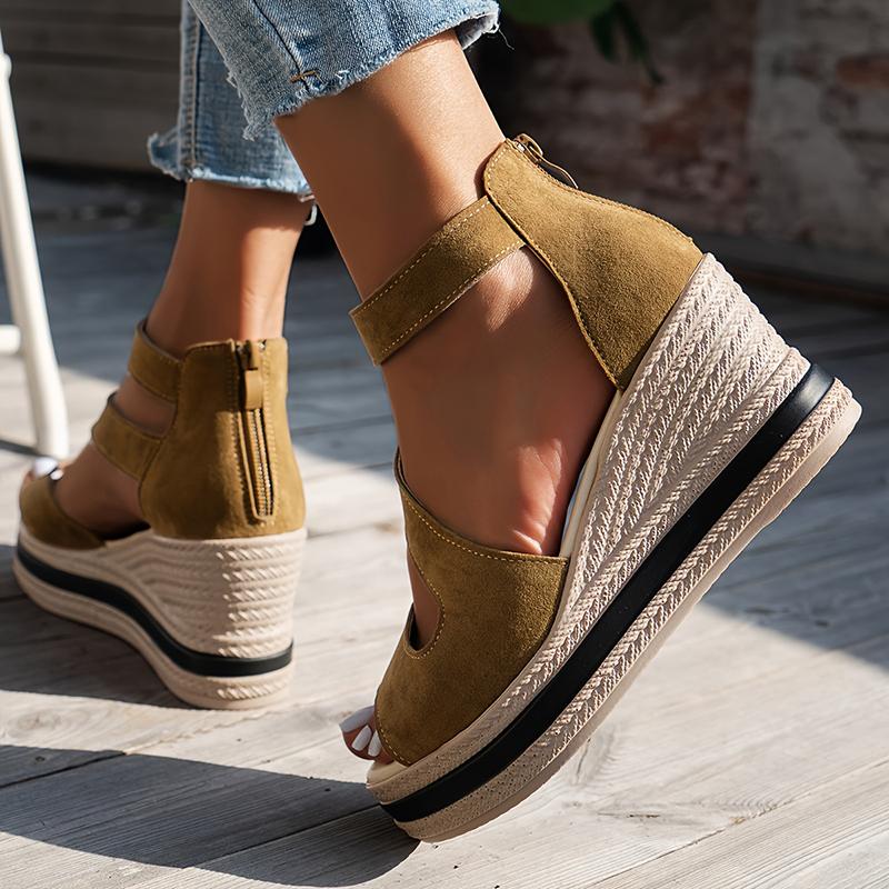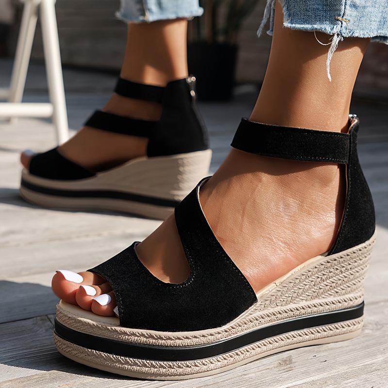 Летние босоножки Lucyever с открытым носком на толстой платформе, женские летние босоножки на танкетке с застежкой-молнией сзади, женские босоножки на толстой подошве, римские туфли