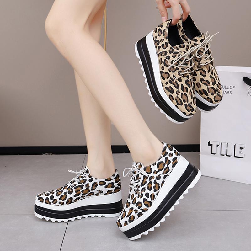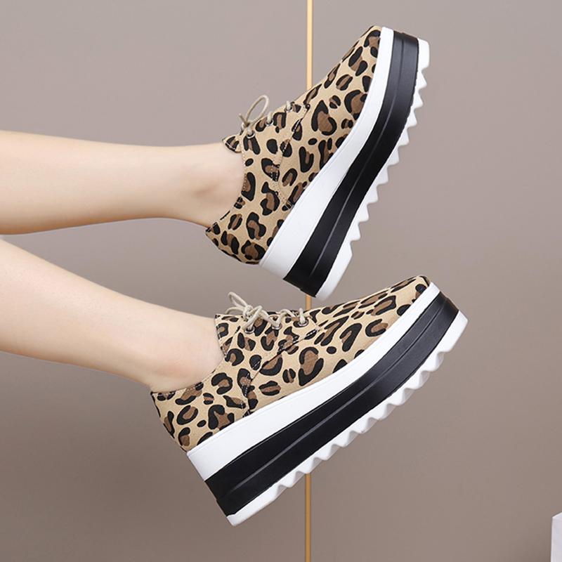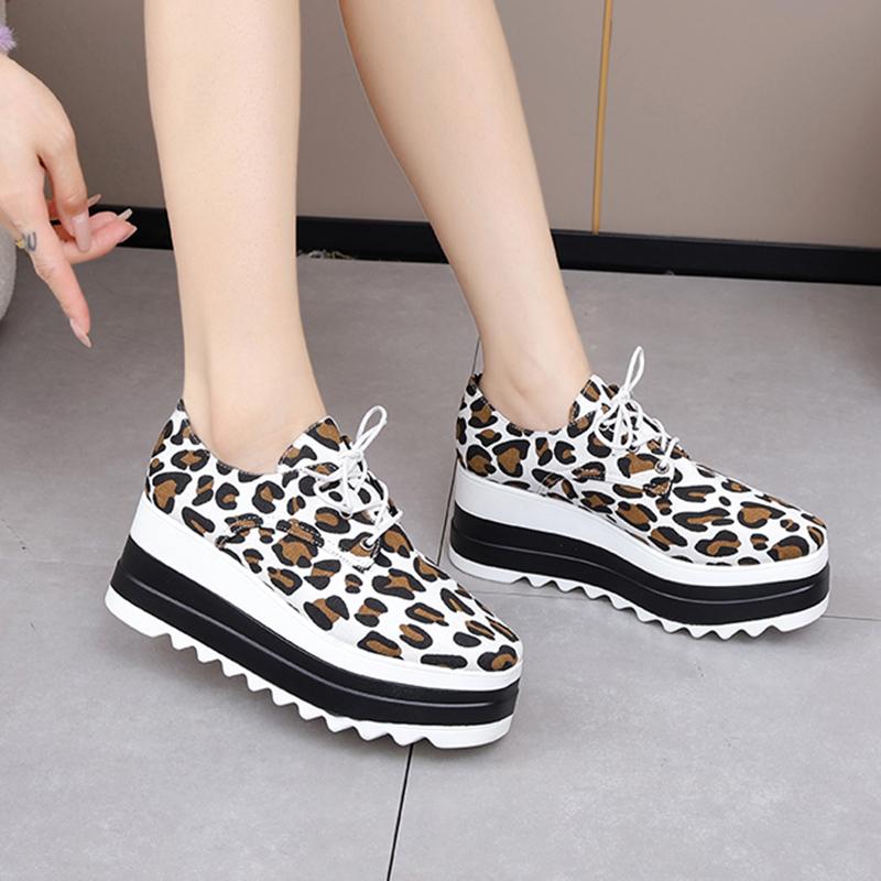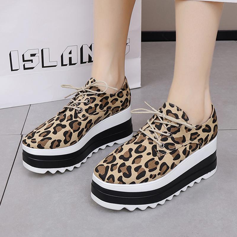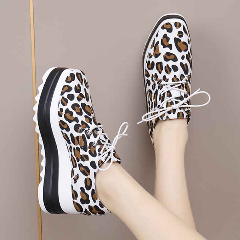 Леопардовый принт грубая платформа броги туфли женские 2024 новые шнурованные толстые туфли женские туфли-лоферы Bullock Flats женские размера плюс 43