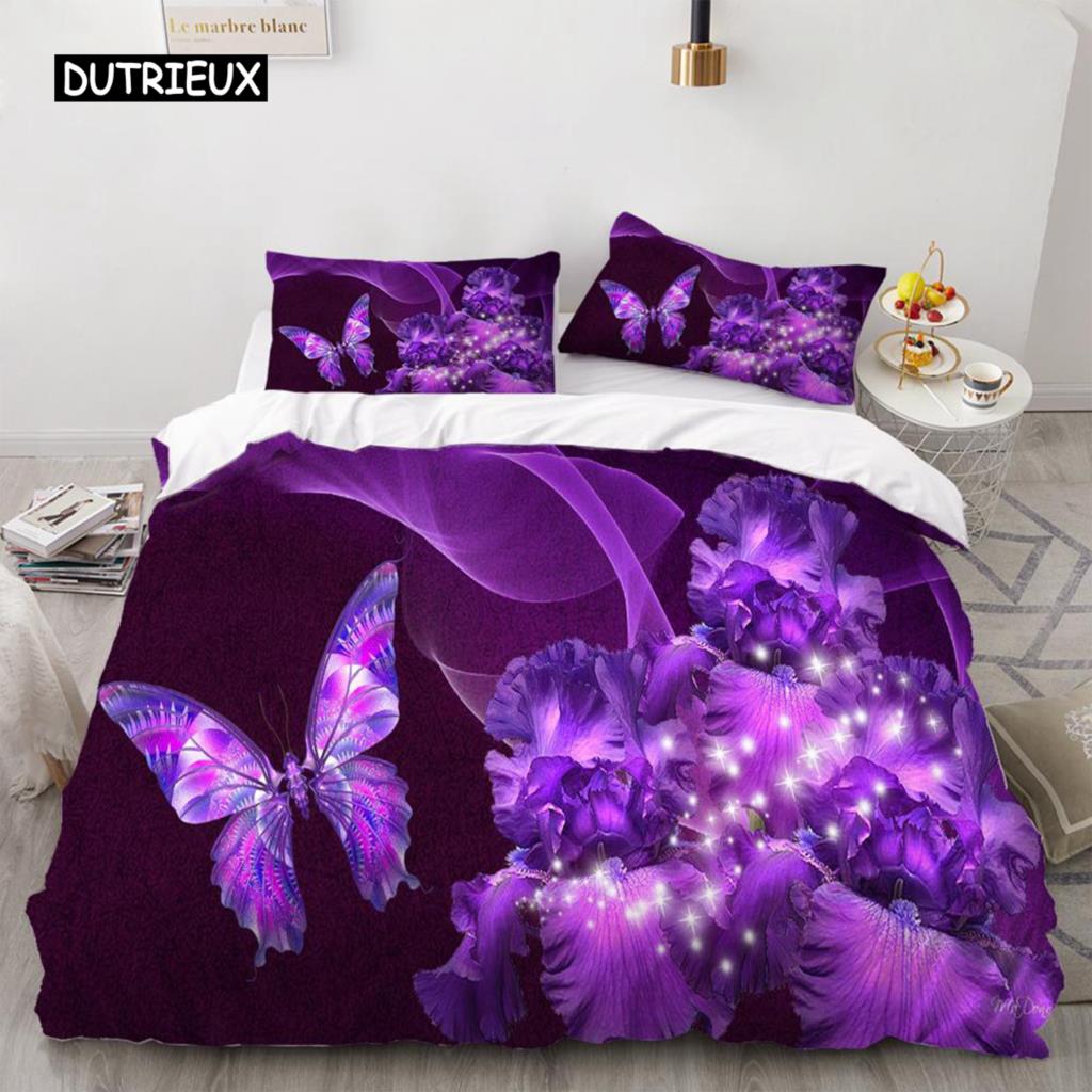 Комплект постельного белья с бабочками, комплект постельного белья с 3D-принтом в виде фиолетовой бабочки и цветочным принтом, фантазийная тема, одеяло размера «king size» для девочки — купить товар онлайн с бесплатной доставкой по всему миру!