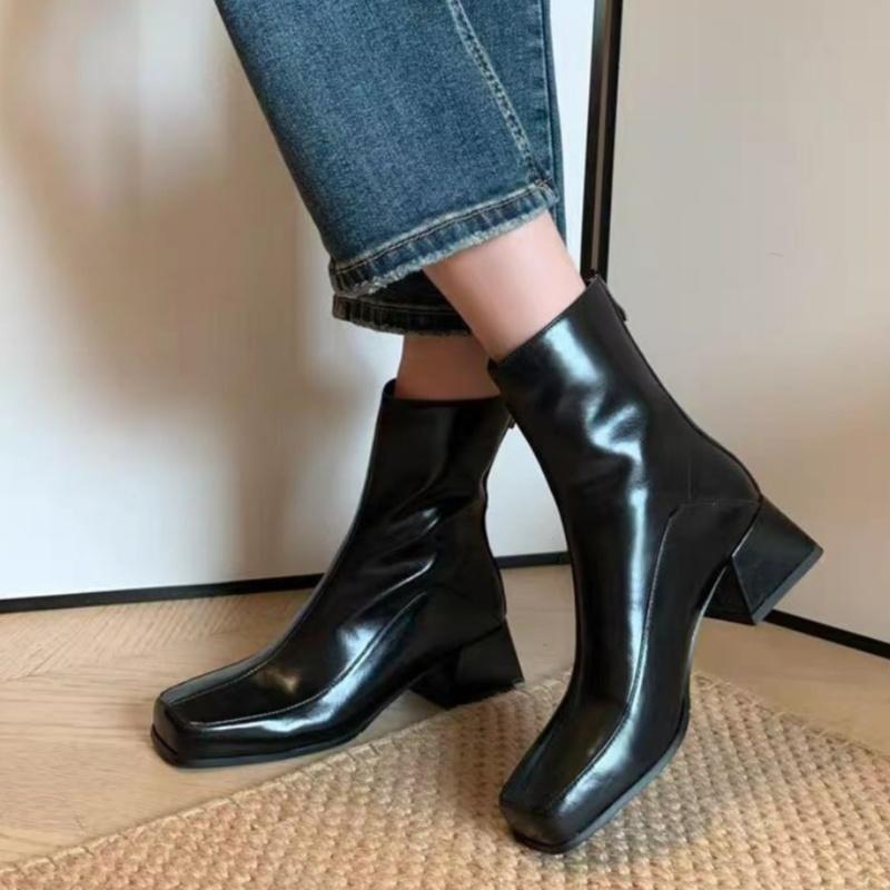 Женские ботинки челси на среднем каблуке с квадратным носком, зимняя обувь 2025 года, повседневная кожаная обувь для ходьбы, тренд, зимние ботинки Mujer — купить товар онлайн с бесплатной доставкой по всему миру!