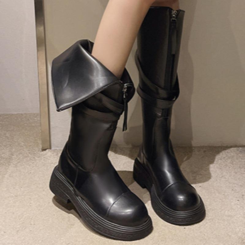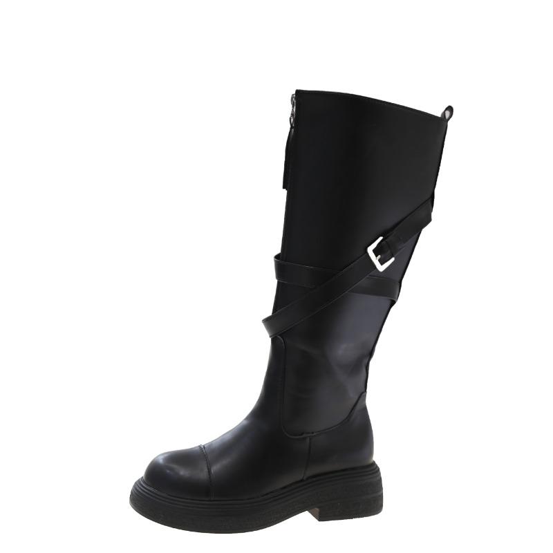 Женские сапоги на высоком каблуке до колена, массивные кожаные зимние повседневные туфли, женская зимняя трендовая обувь 2024 года в стиле готики, челси, модные ботинки для вечеринок