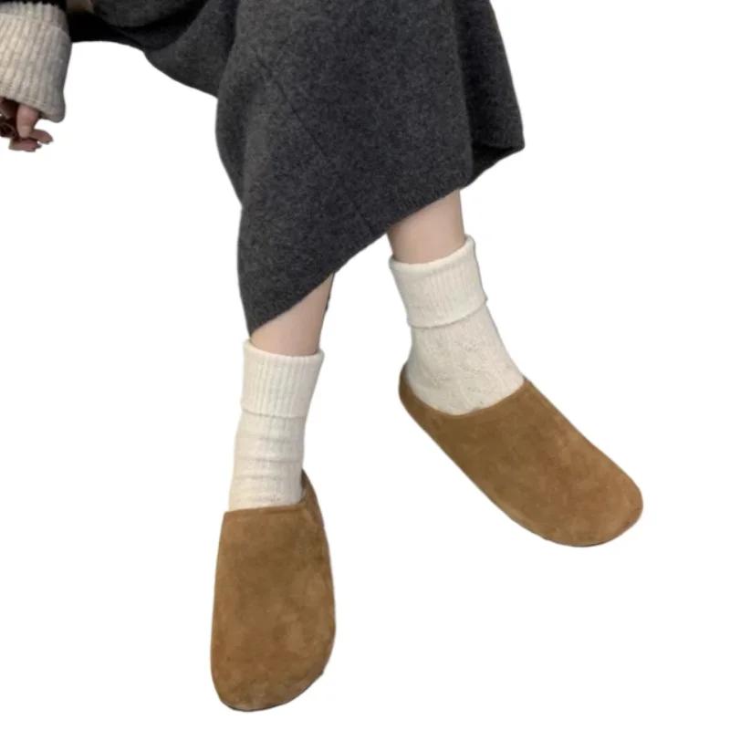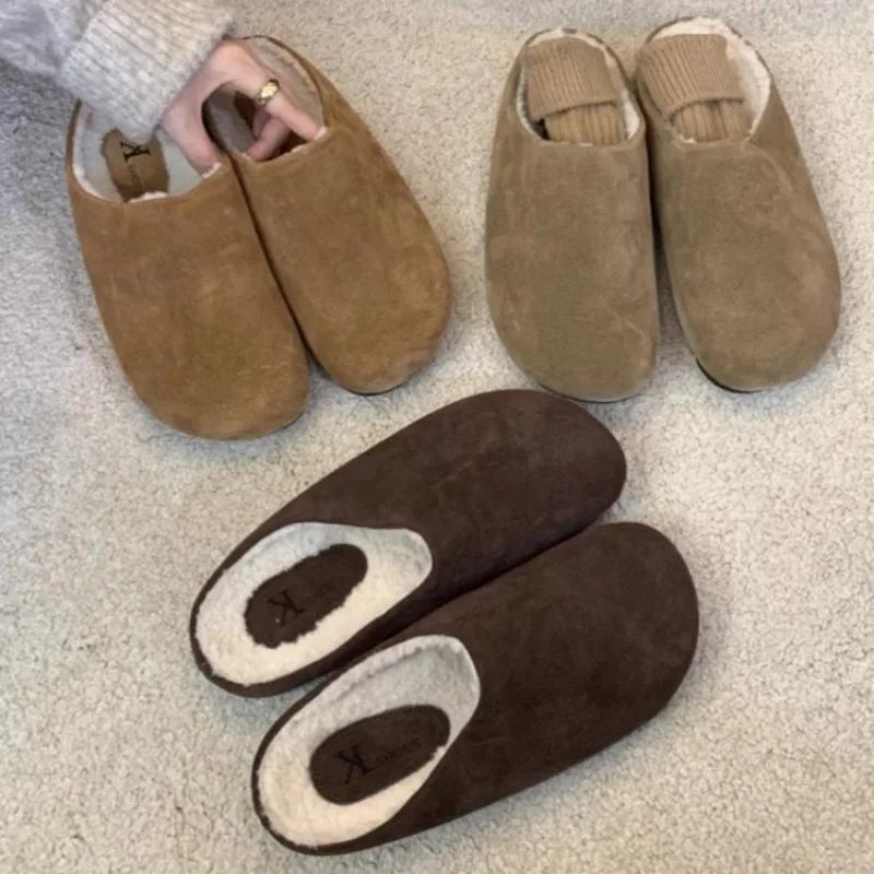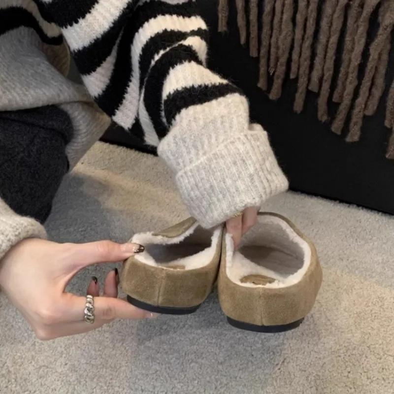 Женские туфли на плоской подошве на платформе, зимние сапоги, мюли, замшевые туфли на меху, новая мода, зима 2025, теплые повседневные домашние хлопковые ботинки, женские
