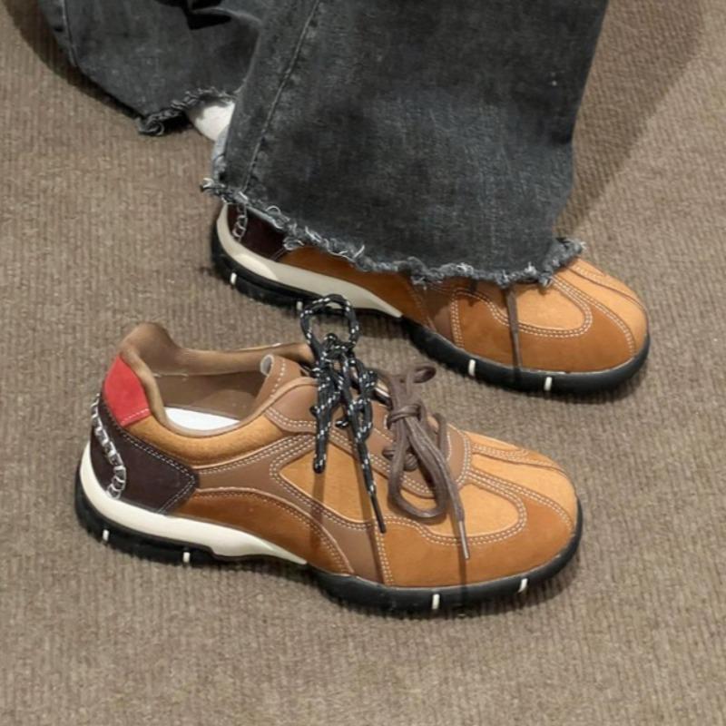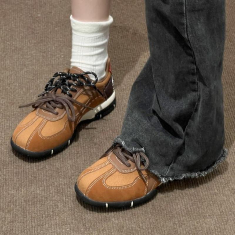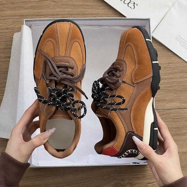 Женские туфли на плоской подошве Повседневные кроссовки Спортивная обувь Замшевые туфли на платформе Женская обувь Осень 2025 Трендовые кроссовки Модные кроссовки на шнуровке Zapatos Mujer