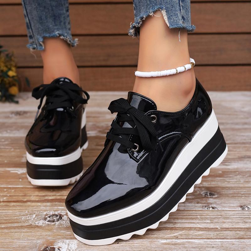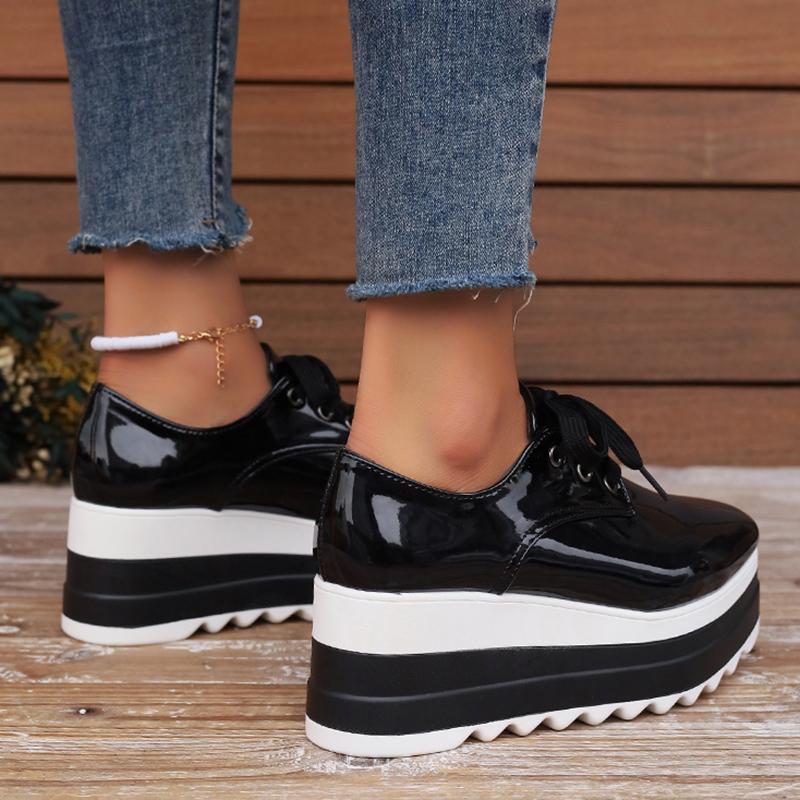 2024 Новые лакированные туфли-броги с толстой подошвой для женщин, женские туфли больших размеров на плоской подошве со шнуровкой, женские туфли-оксфорды на толстой платформе 42