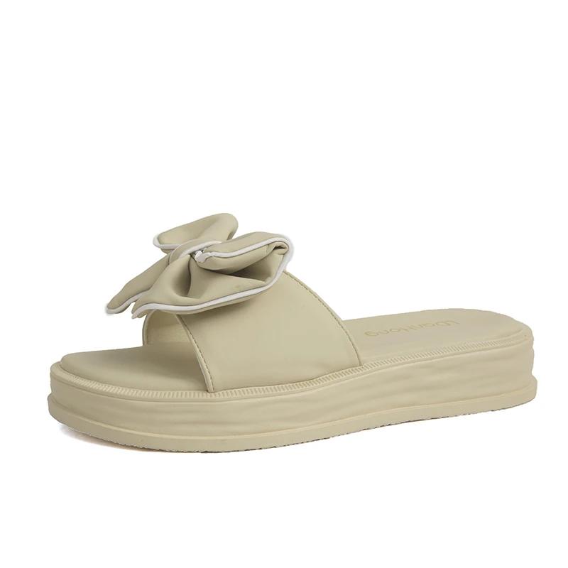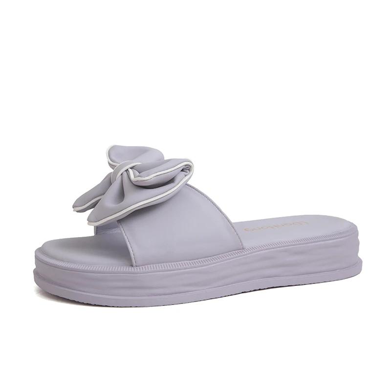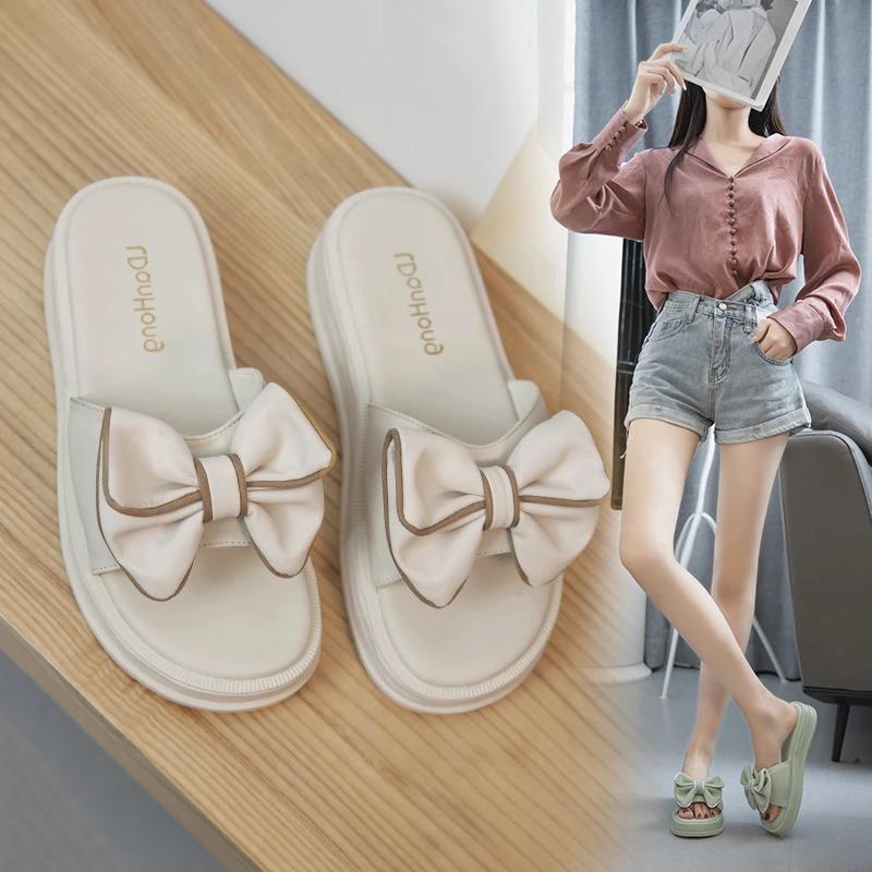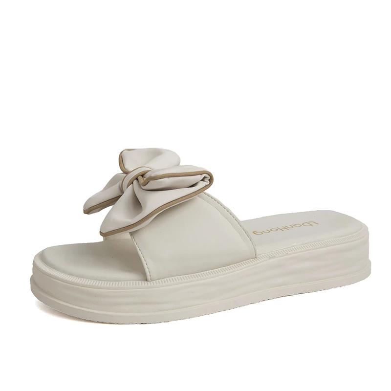 2024 Новый летний стиль, модные и элегантные босоножки на платформе с бантом, однотонные легкие тапочки с открытым носком и плоским каблуком