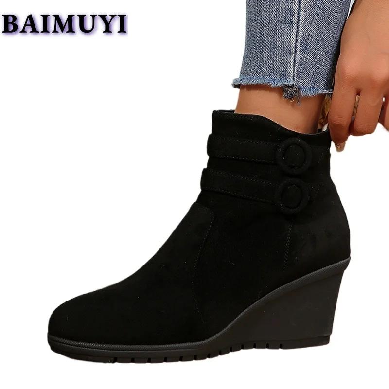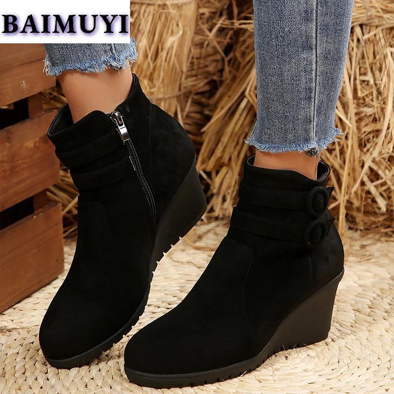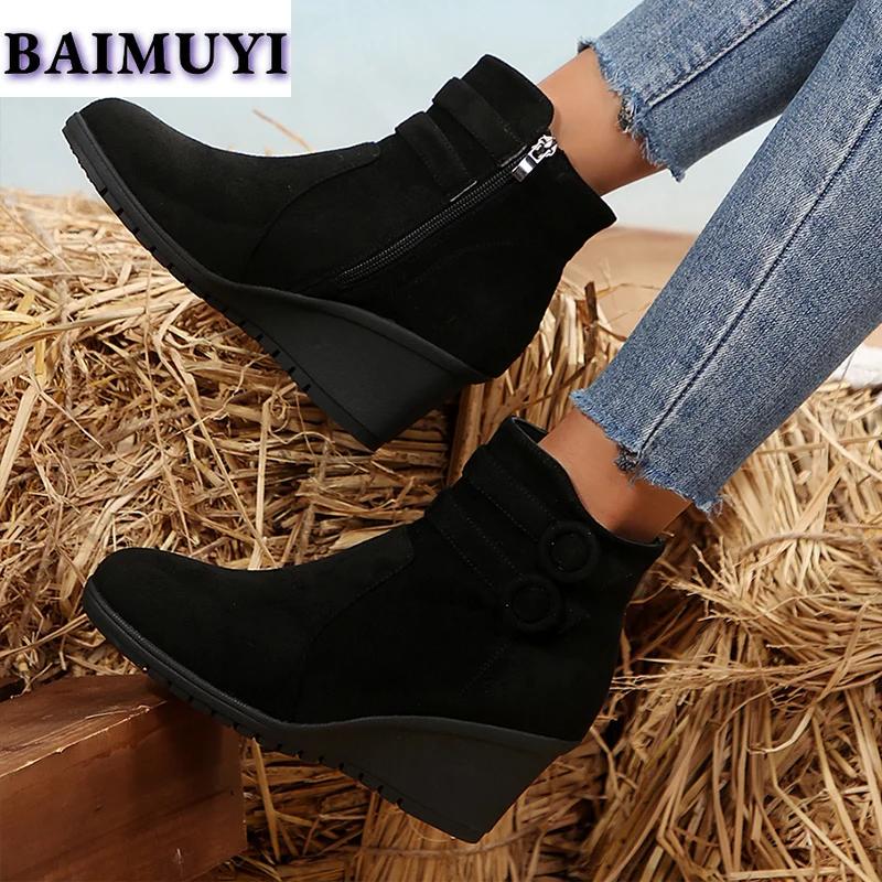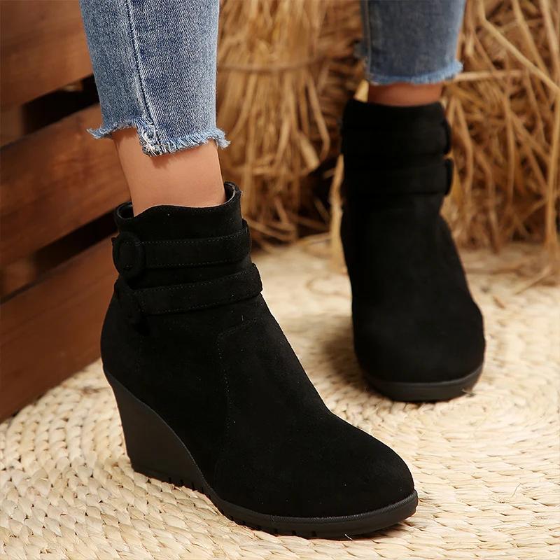 Женские ботильоны на танкетке, замшевые туфли на высоком каблуке, тренд 2025 года, новые дизайнерские зимние ботинки челси, элегантные туфли на молнии, женские ботинки