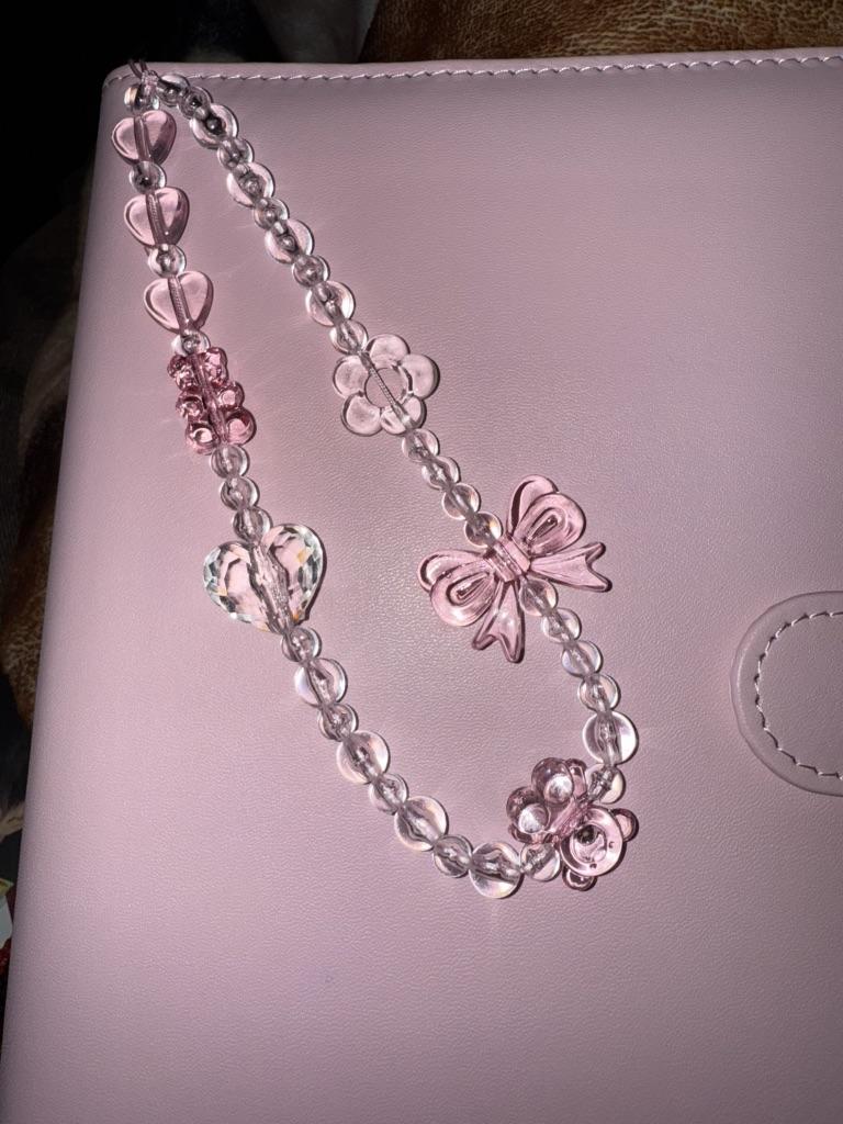 Розовый браслет-шарм в виде сердца из бисера для чехлов для мобильных телефонов