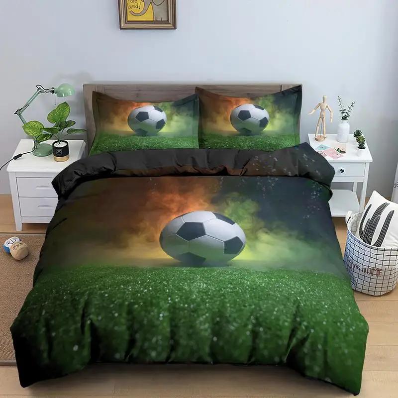 Комплект постельного белья с изображением футбола в формате 3D, пододеяльник с изображением футбола, наволочка из полиэстера, одеяло, чехол King Queen Full Double, спортивный спортивный чехол для пододеяльника