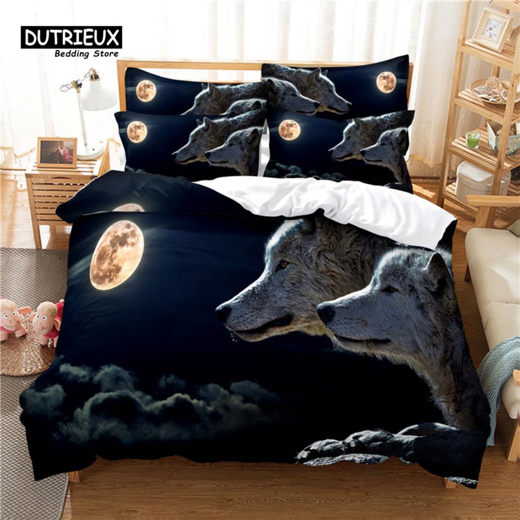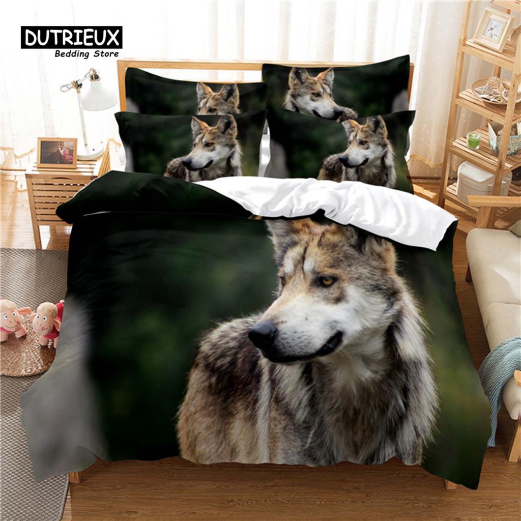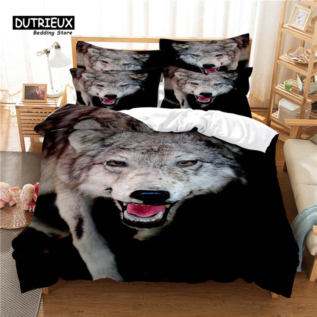 Постельный комплект «Снежный волк», Набор пододеяльников «Волк» из 3 предметов, Мягкий, удобный, дышащий пододеяльник, Для декора спальни, гостевой комнаты