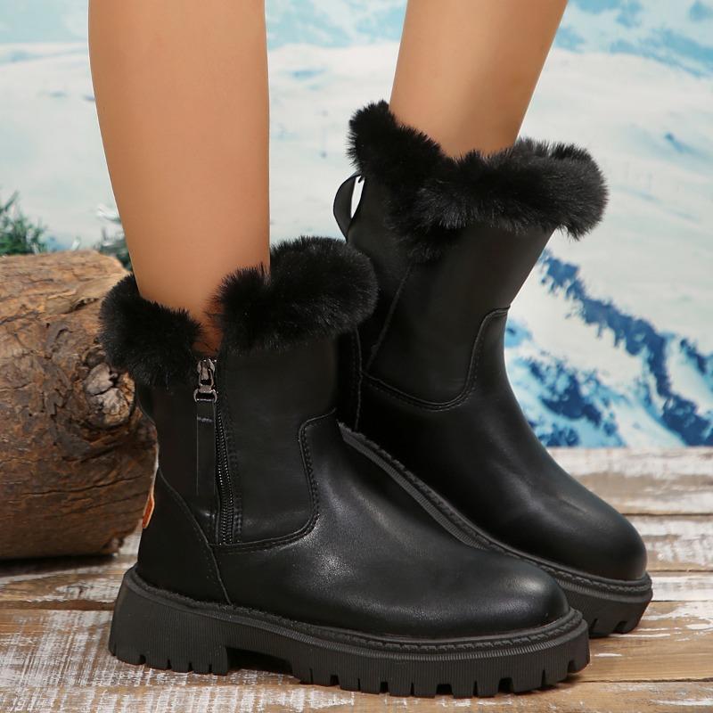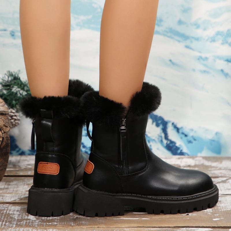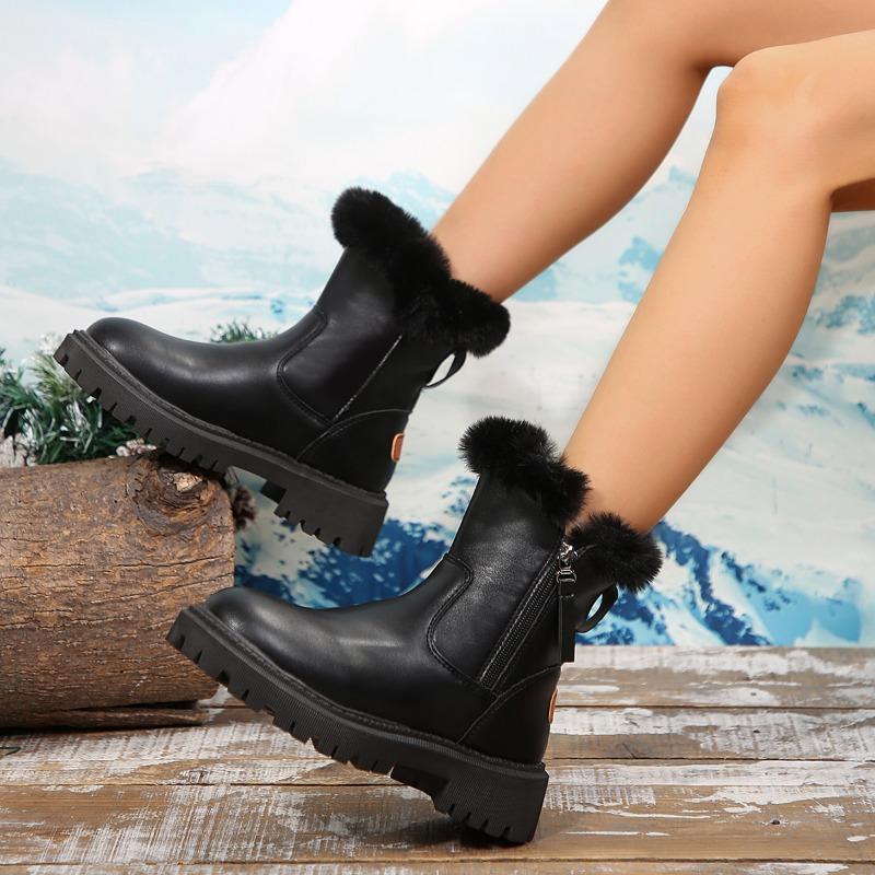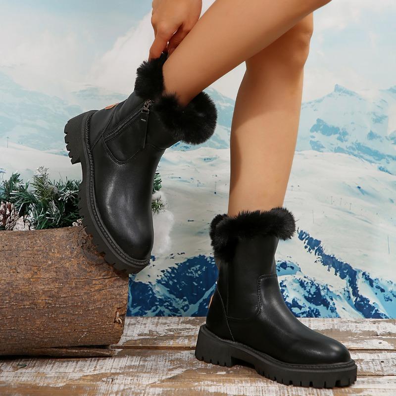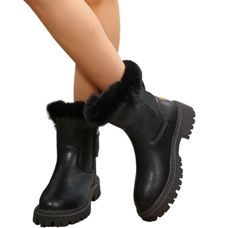2024 Женская уличная обувь до середины икры, женские ботинки, теплые современные ботинки, женская обувь на среднем каблуке с круглым носком и боковой молнией, больших размеров