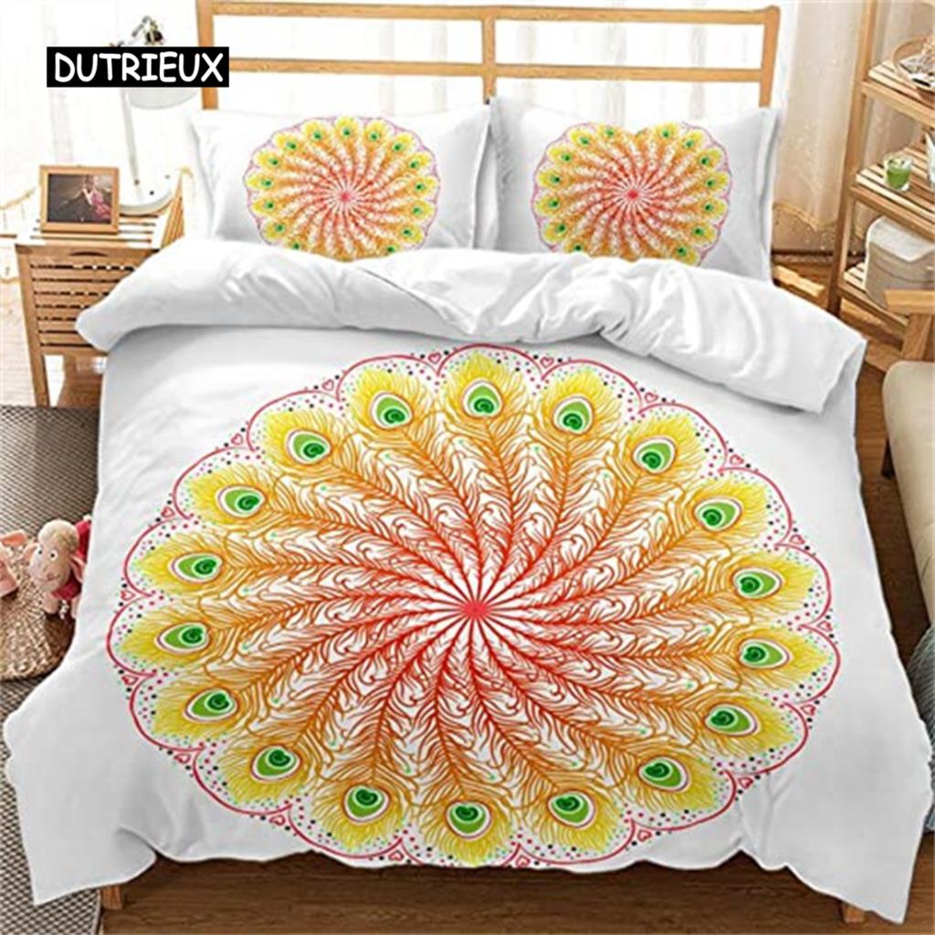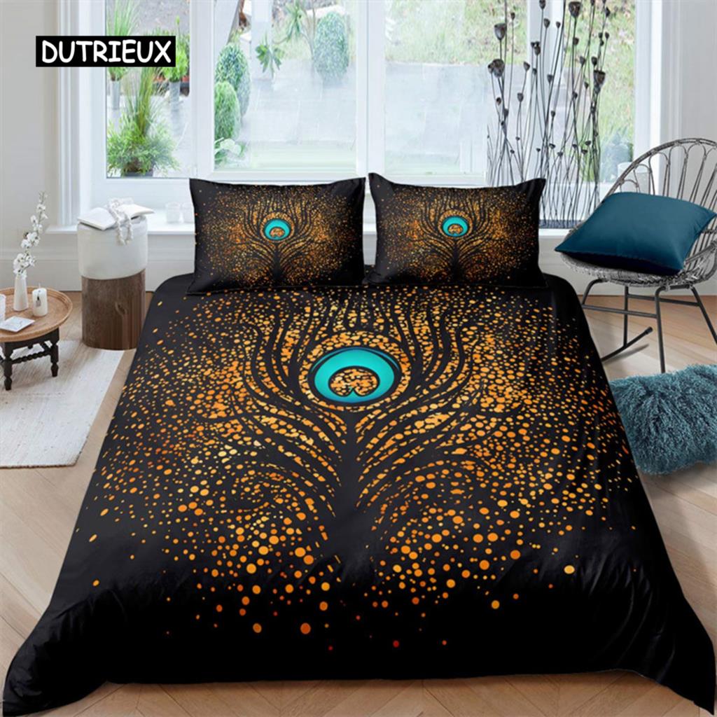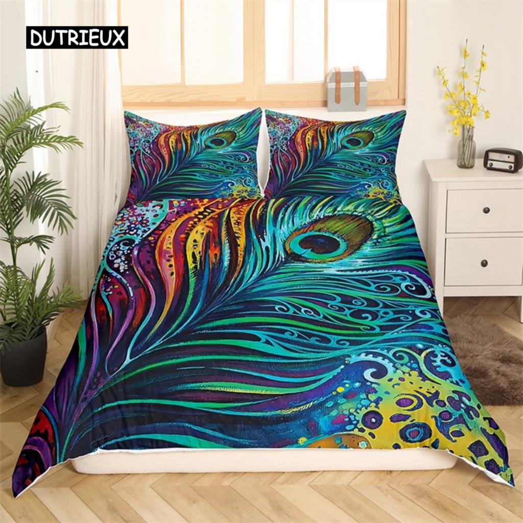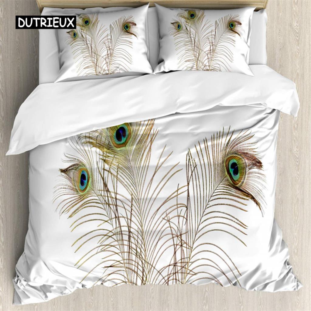 Пододеяльник с павлиньими перьями, комплект постельного белья с перьями, микрофибра, цветочное одеяло, двуспальная кровать для мальчиков-подростков и девочек, декор для спальни
