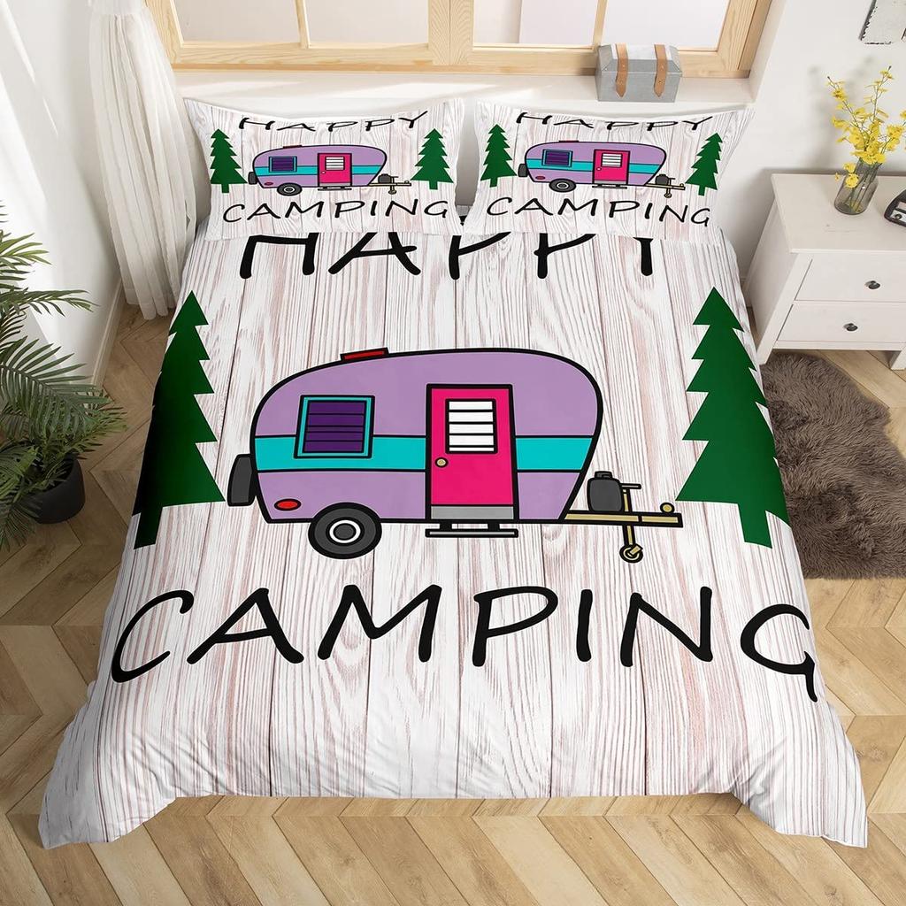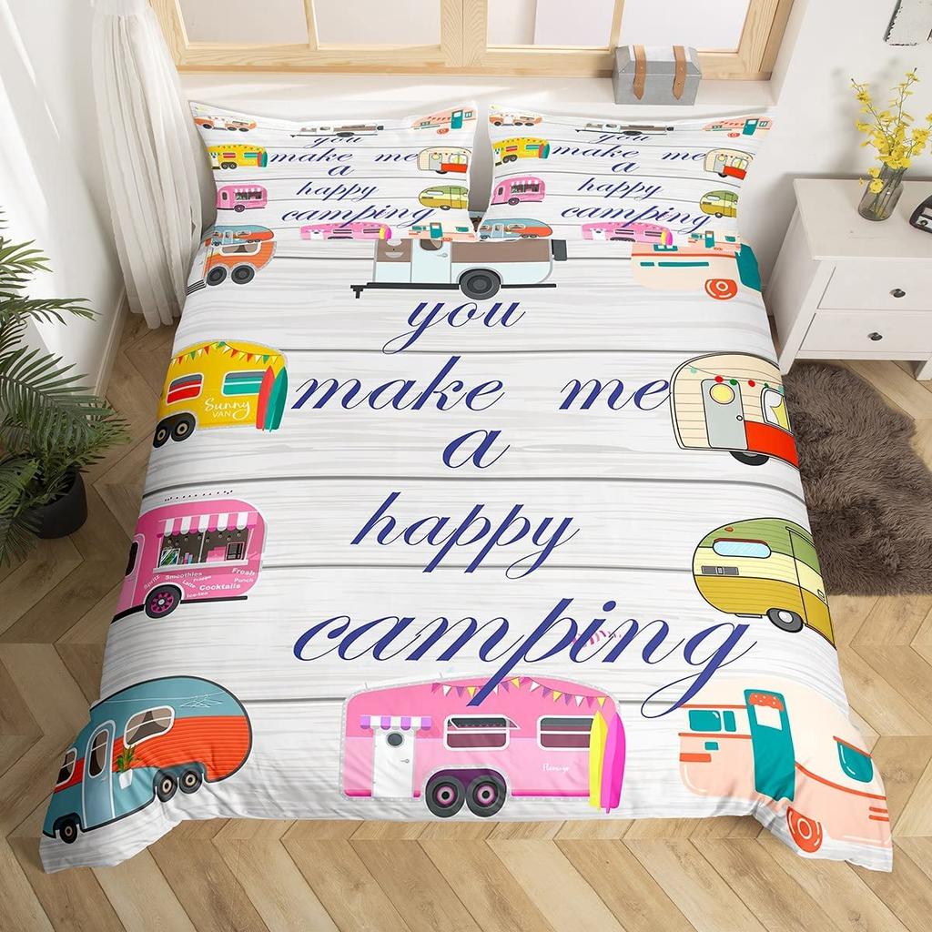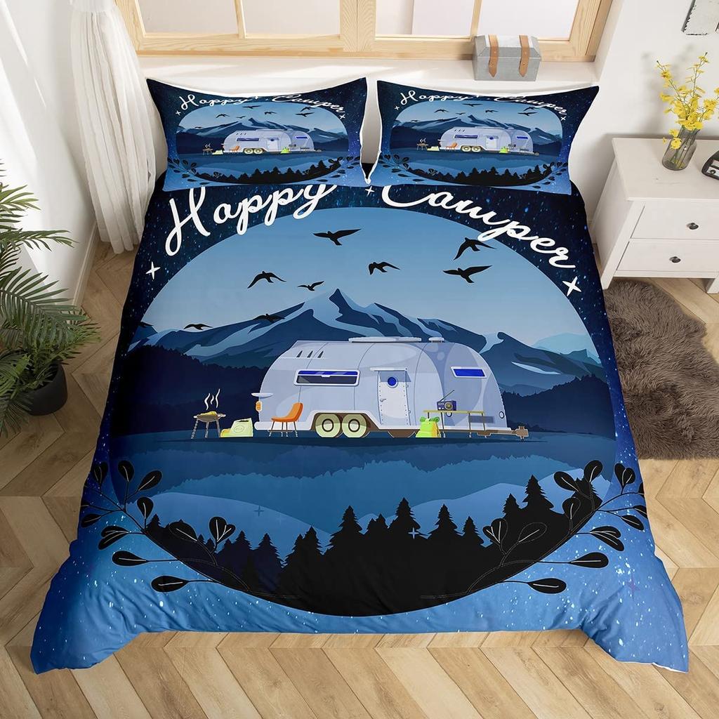 Пододеяльник Happy Camping, комплект постельного белья в деревенском стиле для кемпинга и автофургона, королевский комплект постельного белья «Звездная ночь», чехол для пододеяльника с тематикой приключений