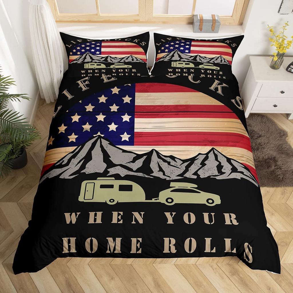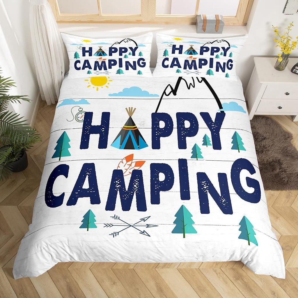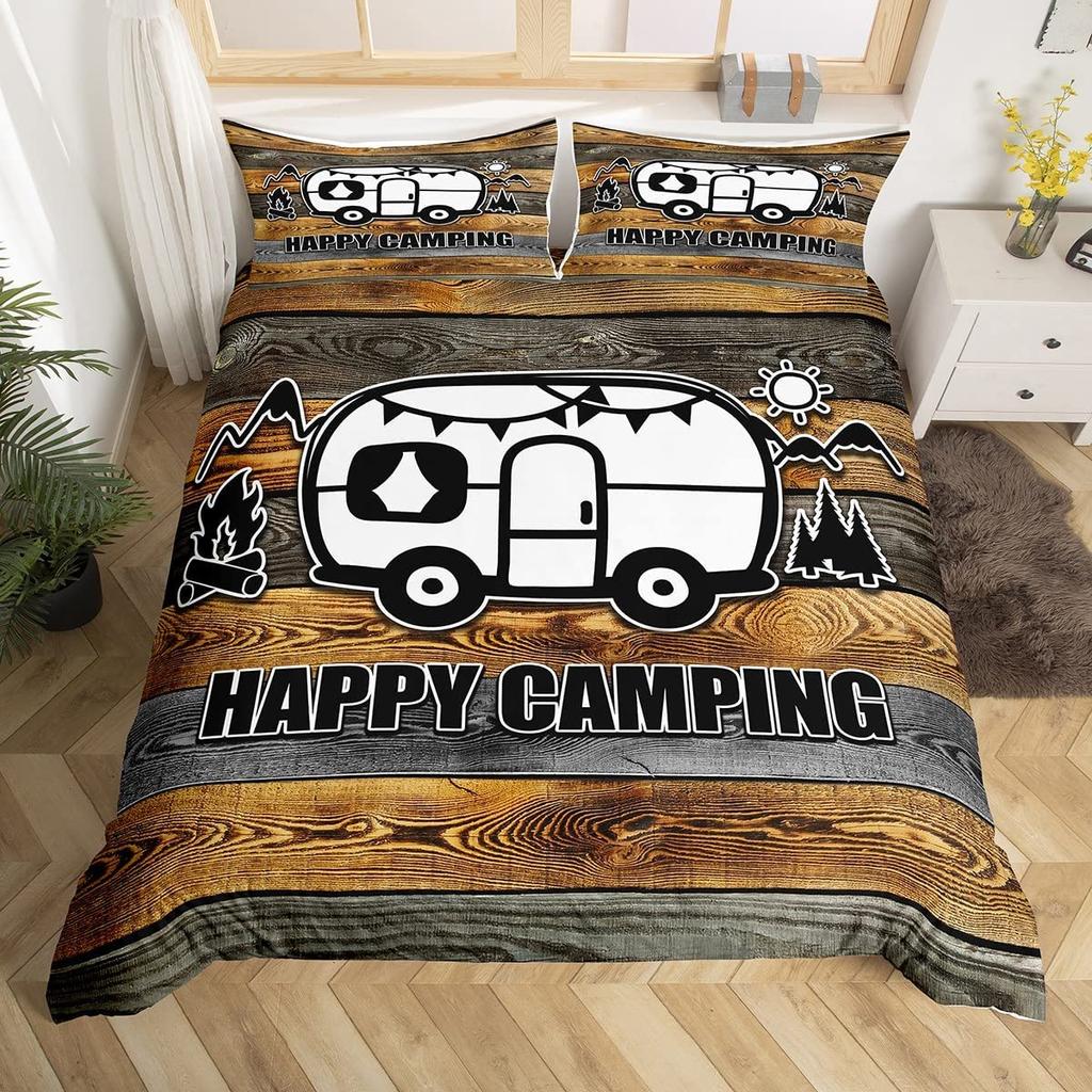 Пододеяльник Happy Camping, комплект постельного белья в деревенском стиле для кемпинга и автофургона, королевский комплект постельного белья «Звездная ночь», чехол для пододеяльника с тематикой приключений