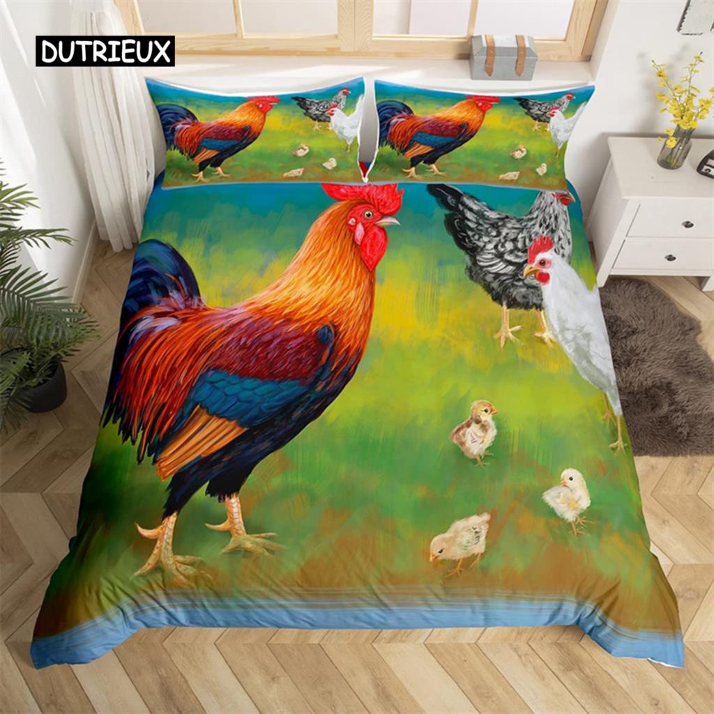 Комплект постельного белья с изображением курицы, королева, фермерское животное, пододеяльник, курица, петух, стеганое одеяло для девочек, подростков, женщин, декор спальни
